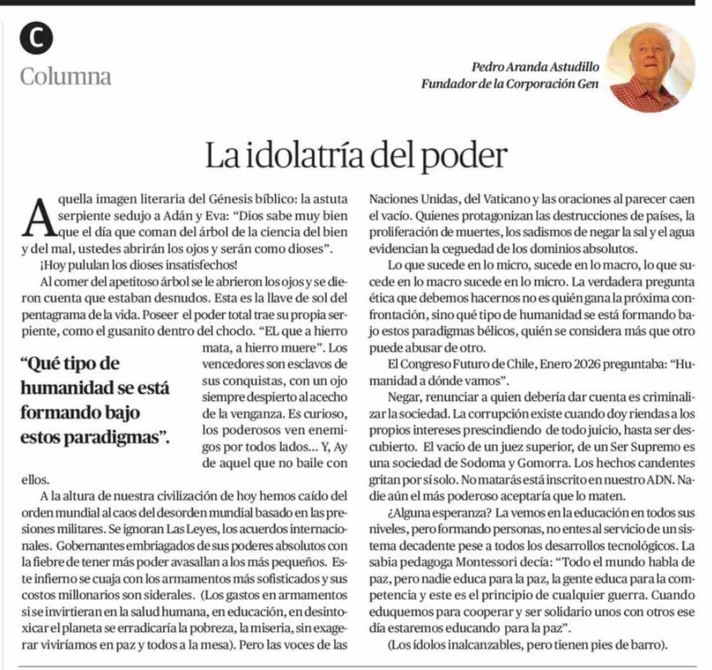 Columnas de Opinión: La idolatría del poder