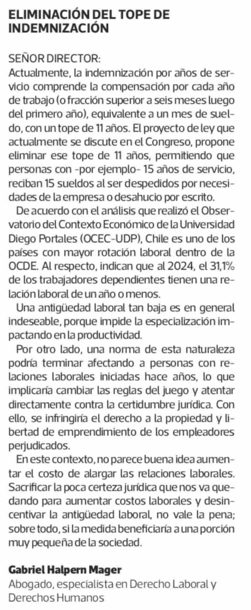 CARTAS: ELIMINACIÓN DEL TOPE DE INDEMNIZACIÓN