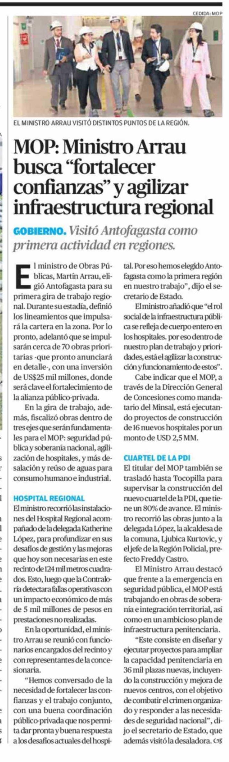 MOP: Ministro Arrau busca "fortalecer confianzas" y agilizar infraestructura regional