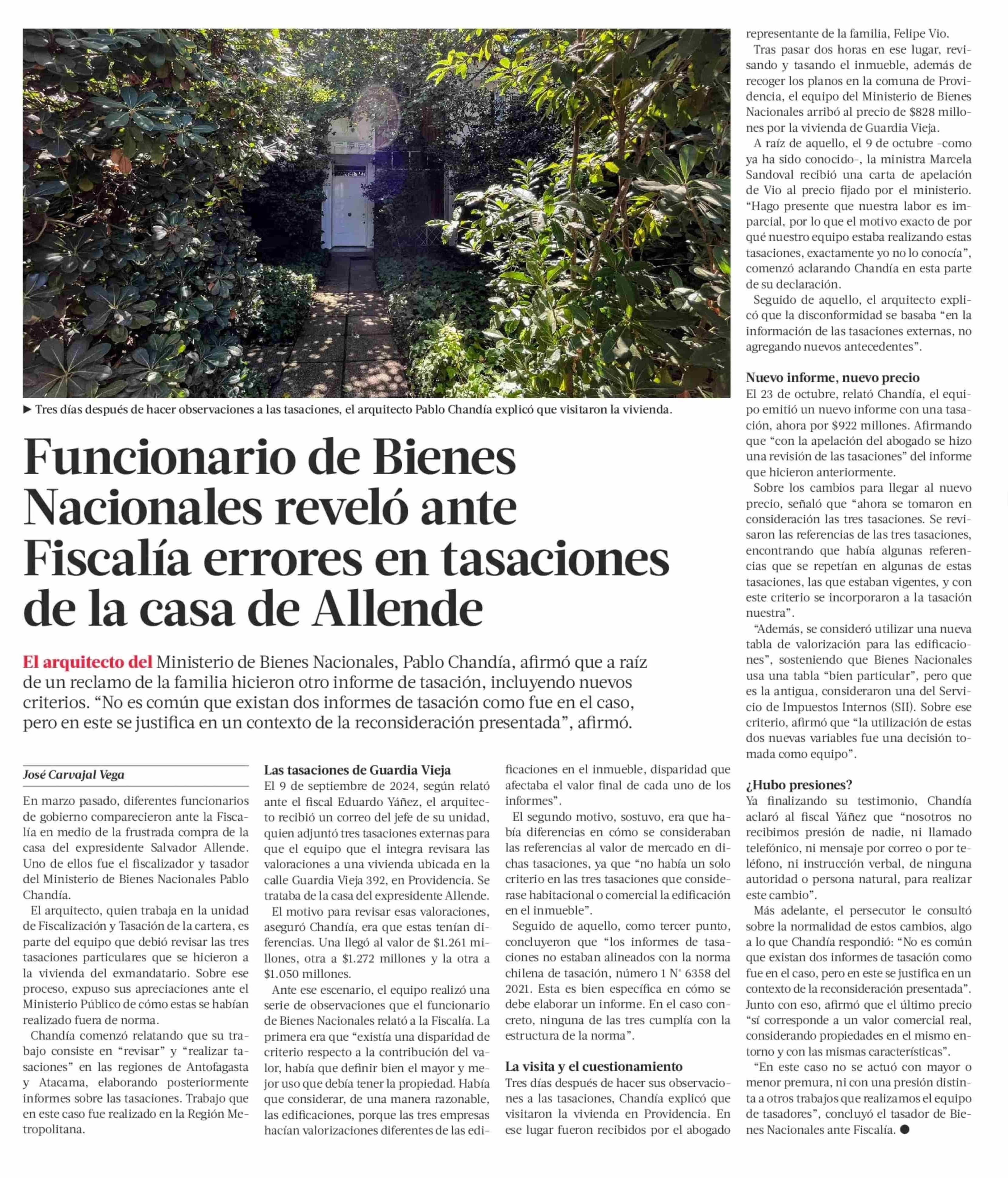 Funcionario de Bienes Nacionales reveló ante Fiscalía errores en tasaciones de la casa de Allende