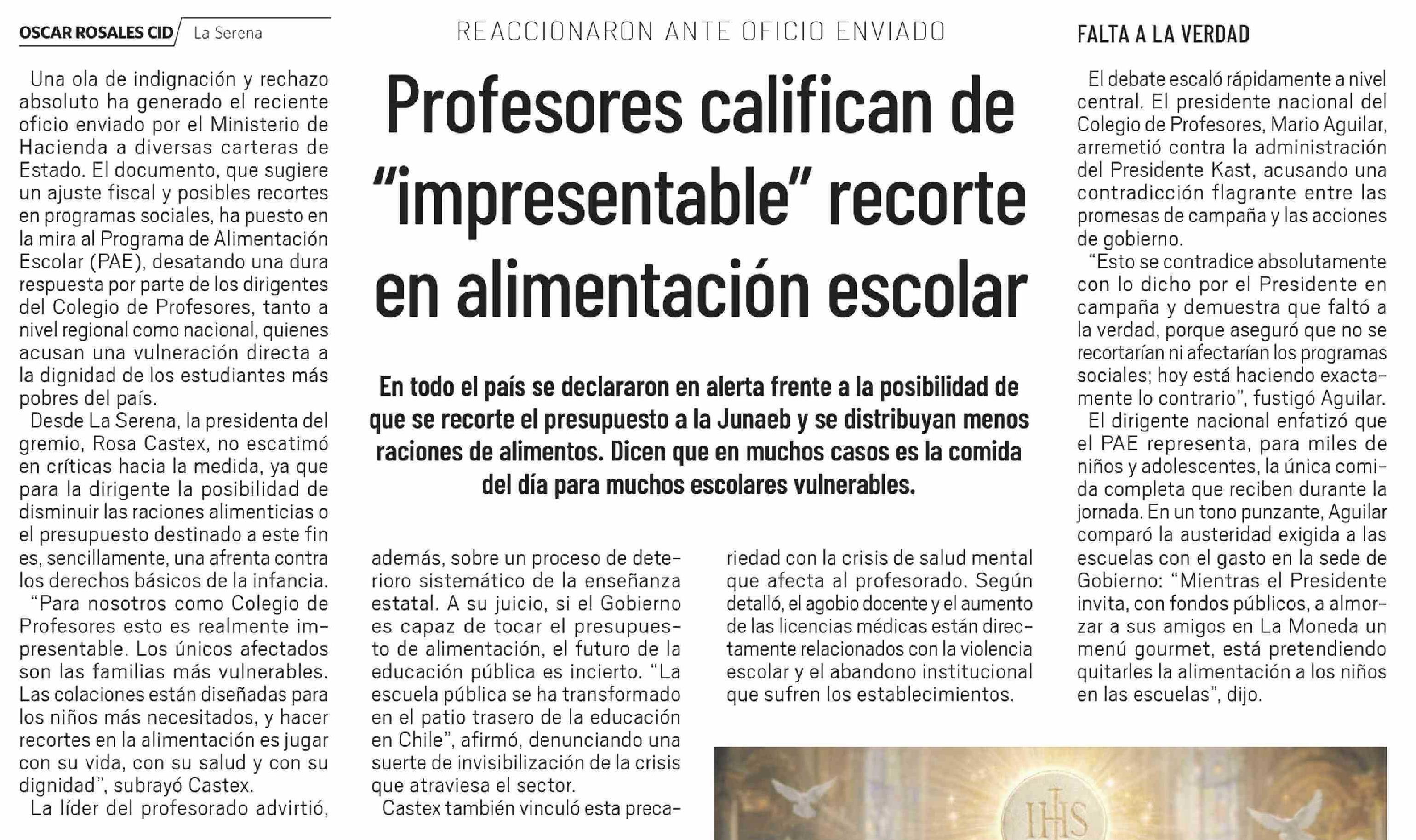 Título: Profesores califican de 'impresentable" recorte en alimentación escolar