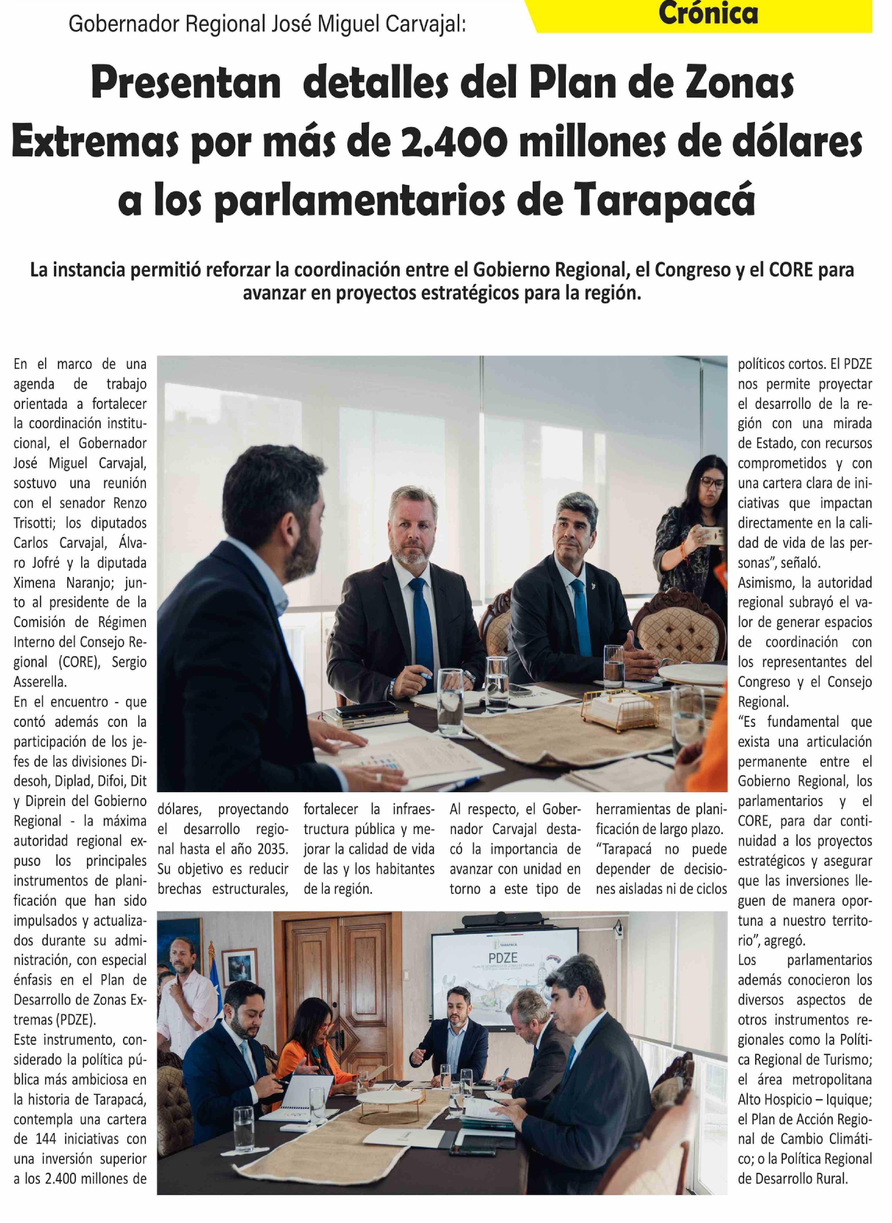 Presentan detalles del Plan de Zonas Extremas por más de 2.400 millones de dólares a los parlamentarios de Tarapacá