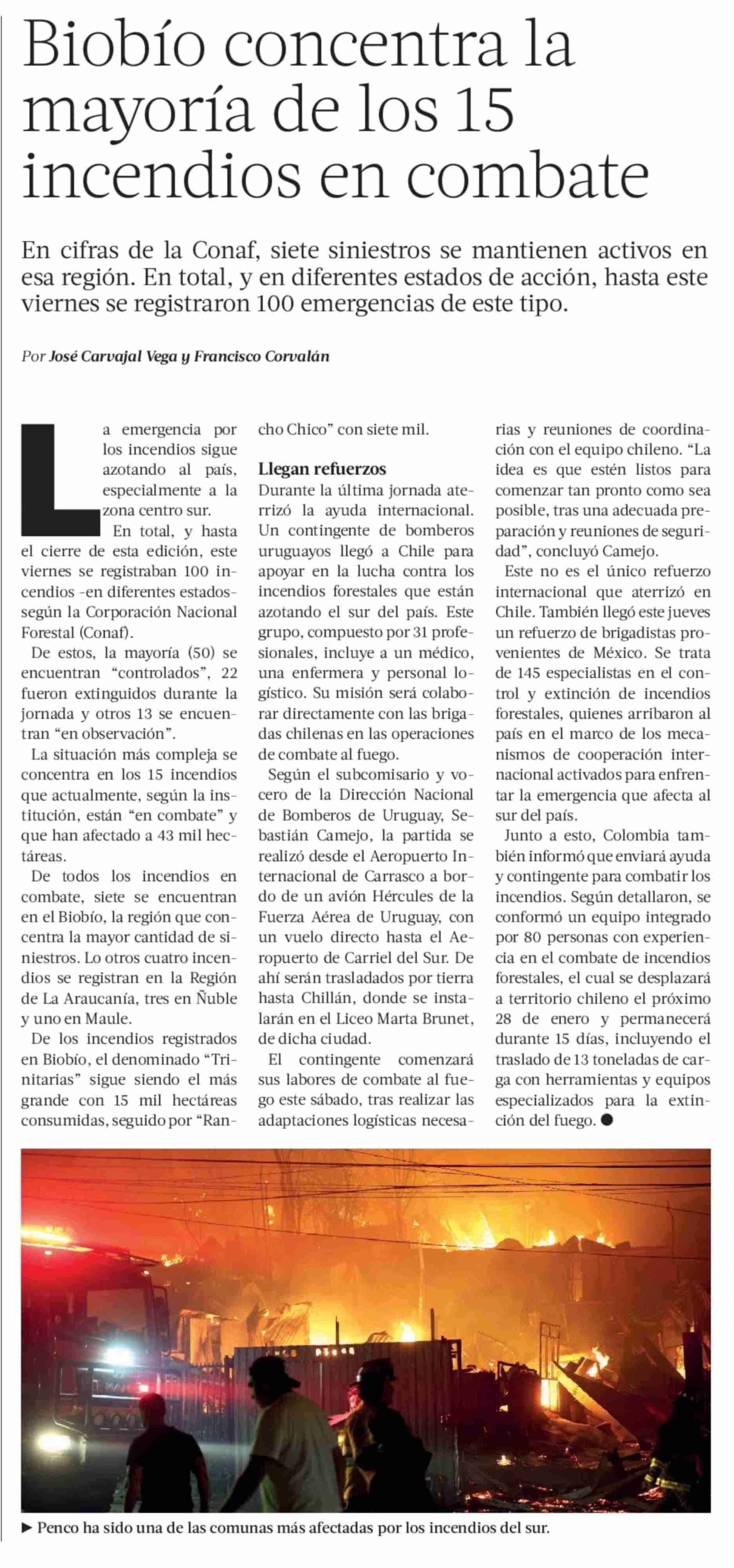 Título: Biobío concentra la mayoría de los 15 incendios en combate