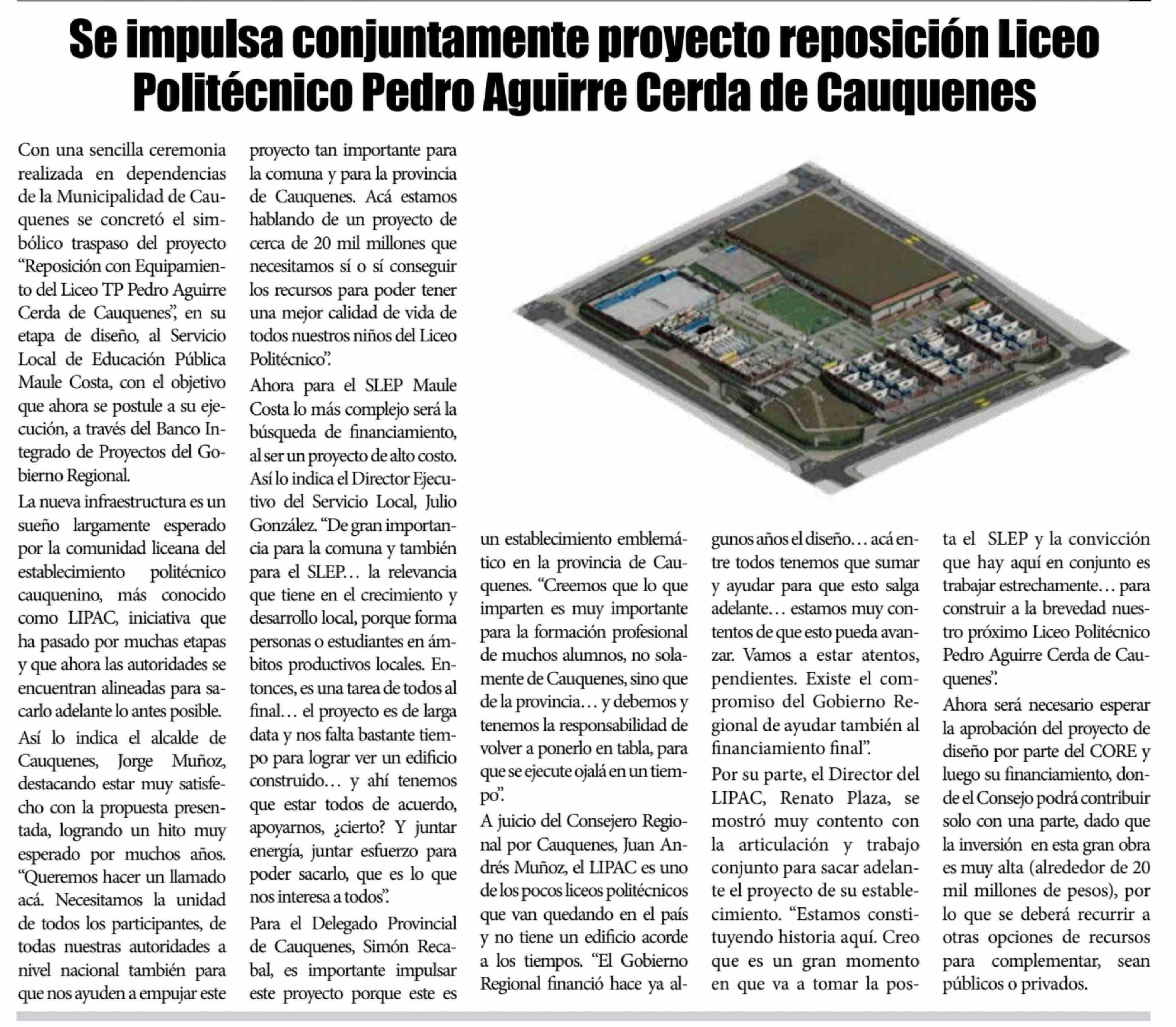 Se impulsa conjuntamente proyecto reposición Liceo Politécnico Pedro Aguirre Cerda de Cauquenes