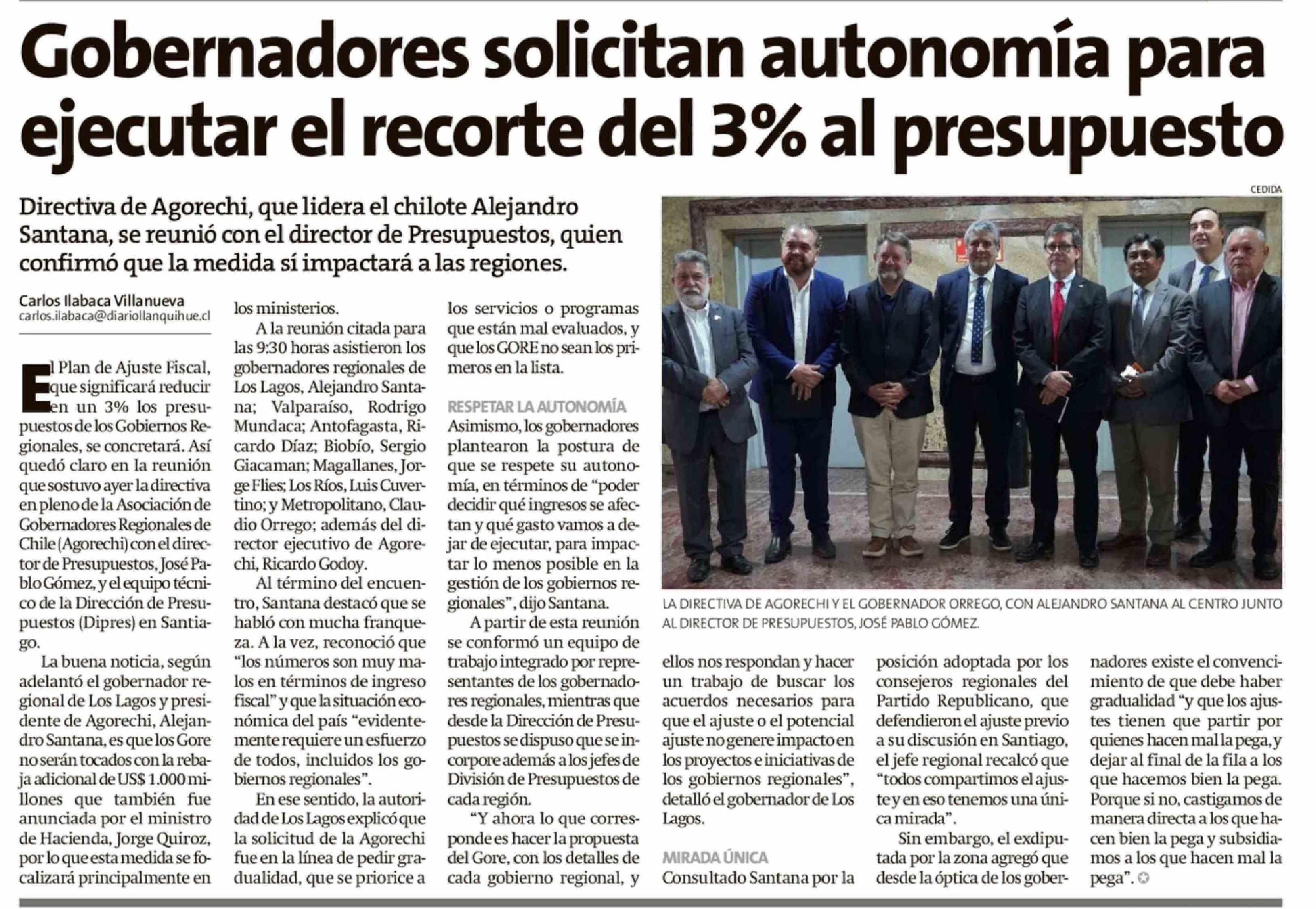 Gobernadores solicitan autonomía para ejecutar el recorte del 3% al presupuesto