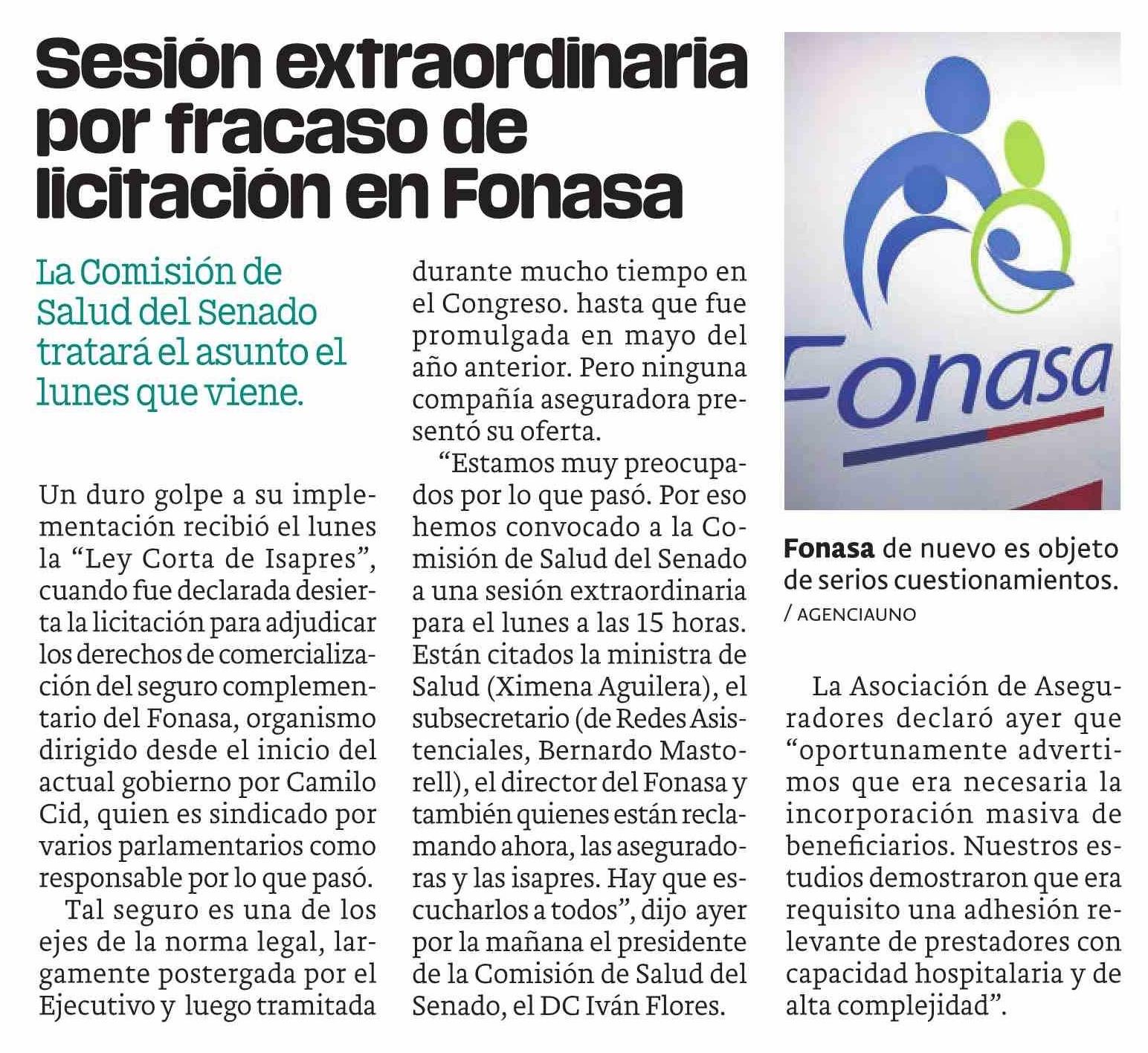 Sesión extraordinaria licitación en Fonasa por fracaso de
