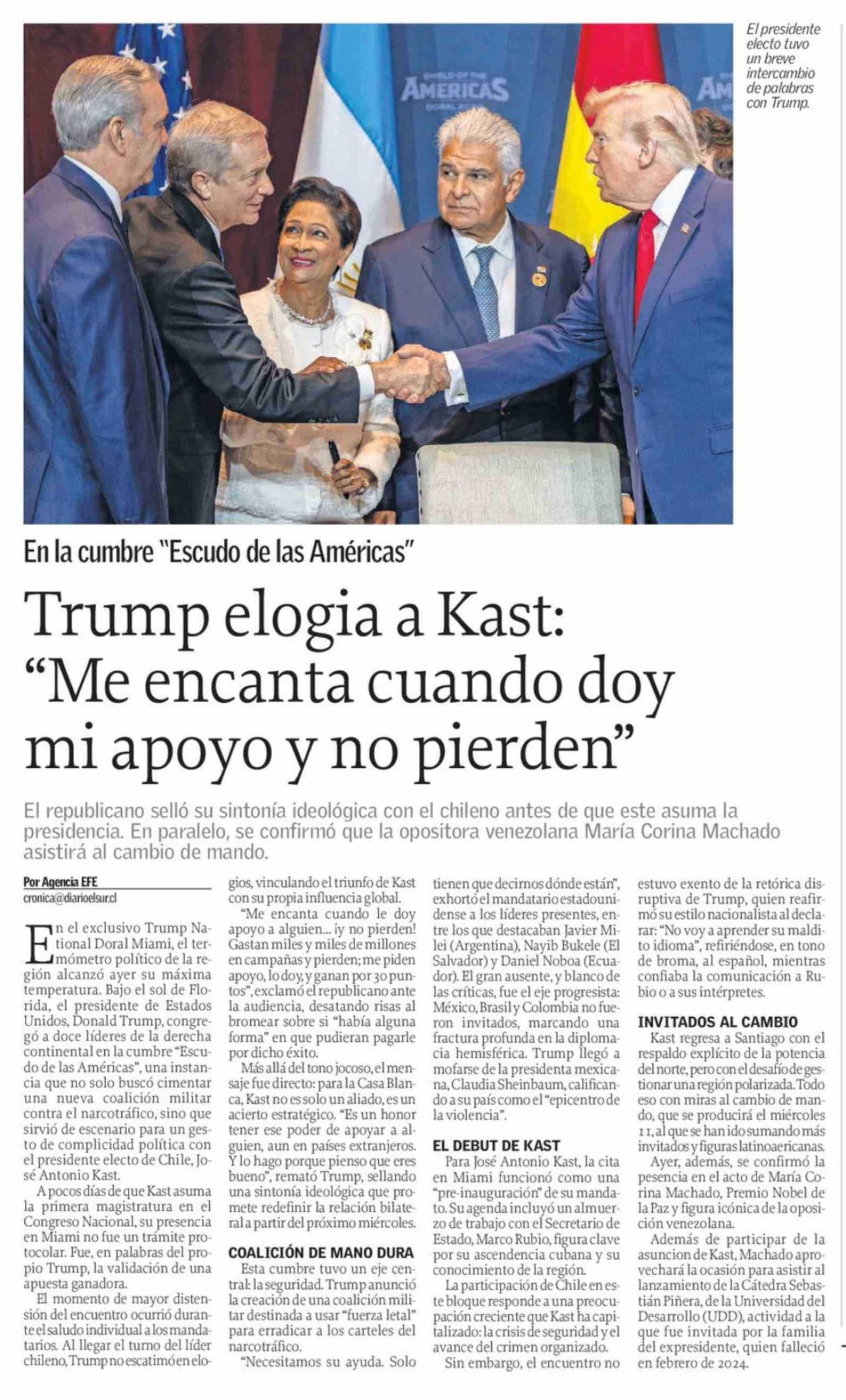 Trump elogia a Kast: "Me encanta cuando doy mi apoyo y no pierden"