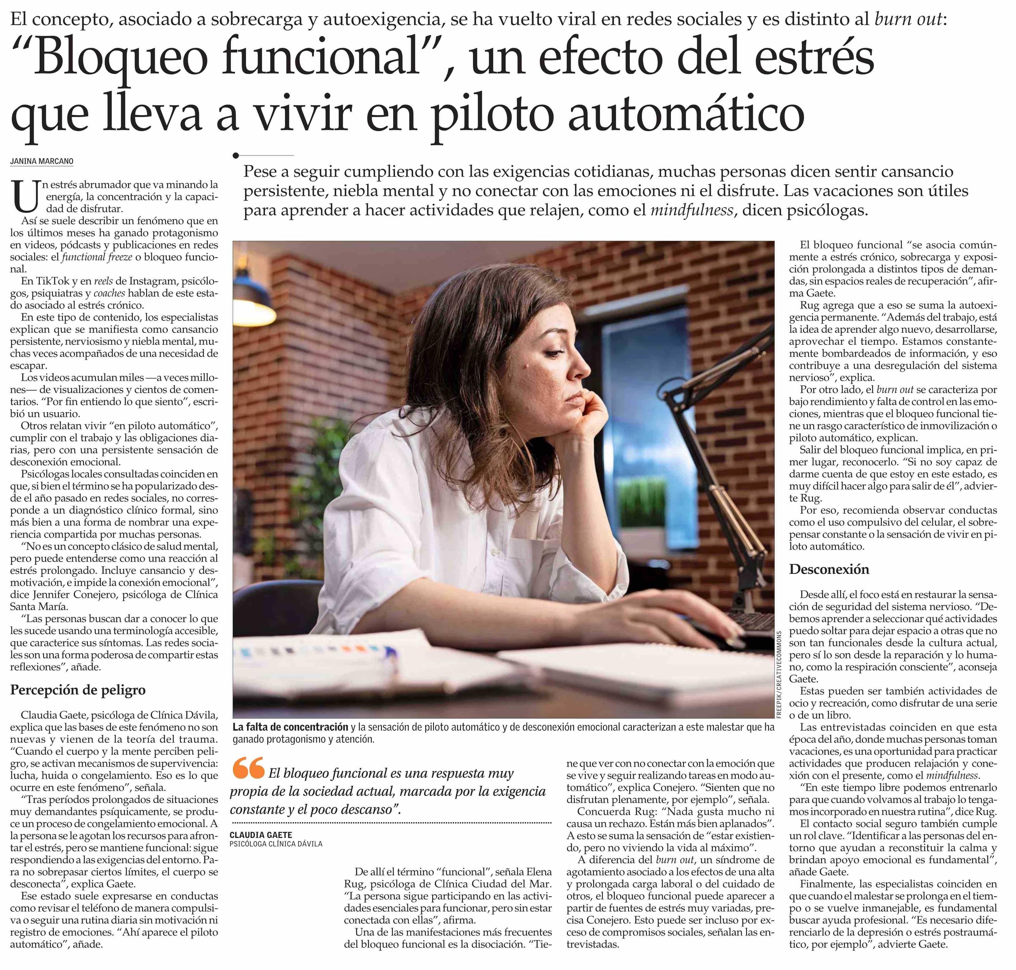 “Bloqueo funcional”, un efecto del estrés que lleva a vivir en piloto automático