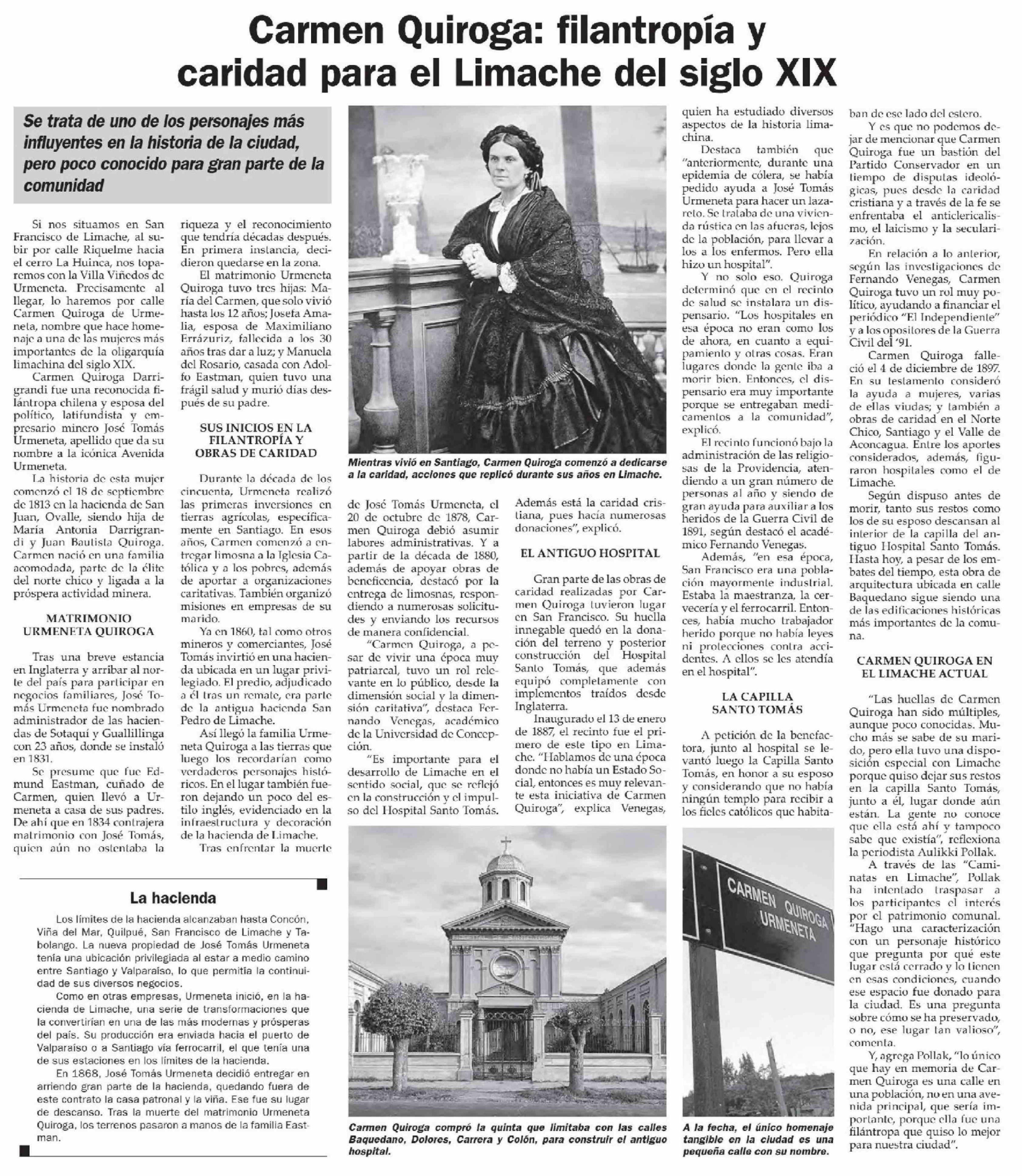 Carmen Quiroga: filantropía y caridad para el Limache del siglo XIX