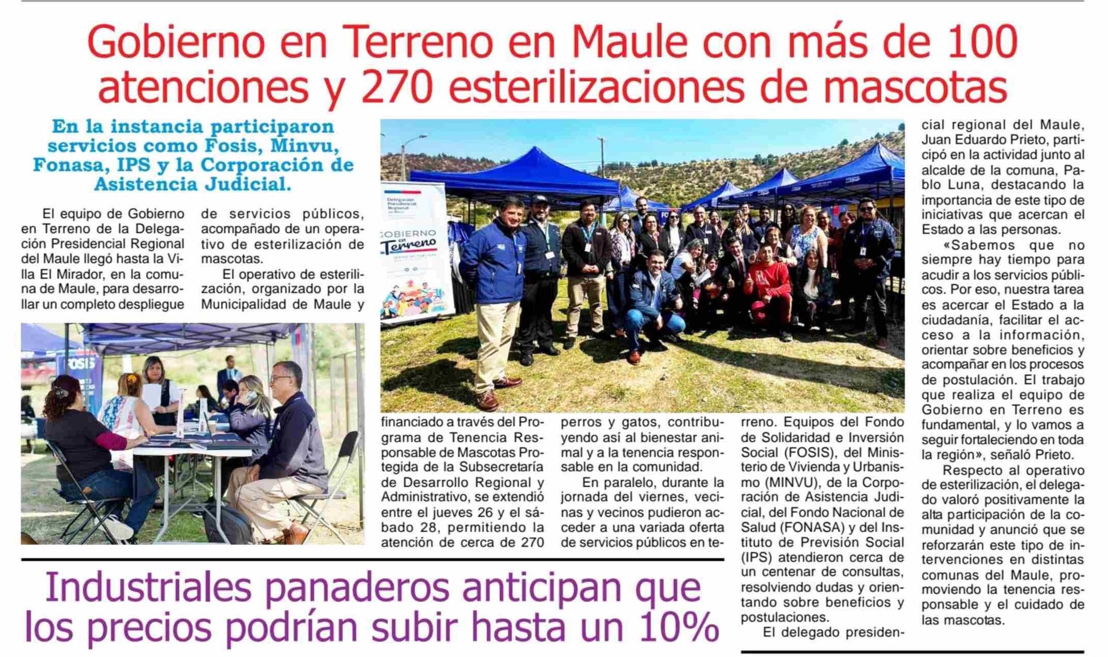 Gobierno en Terreno en Maule con más de 100 atenciones y 270 esterilizaciones de mascotas