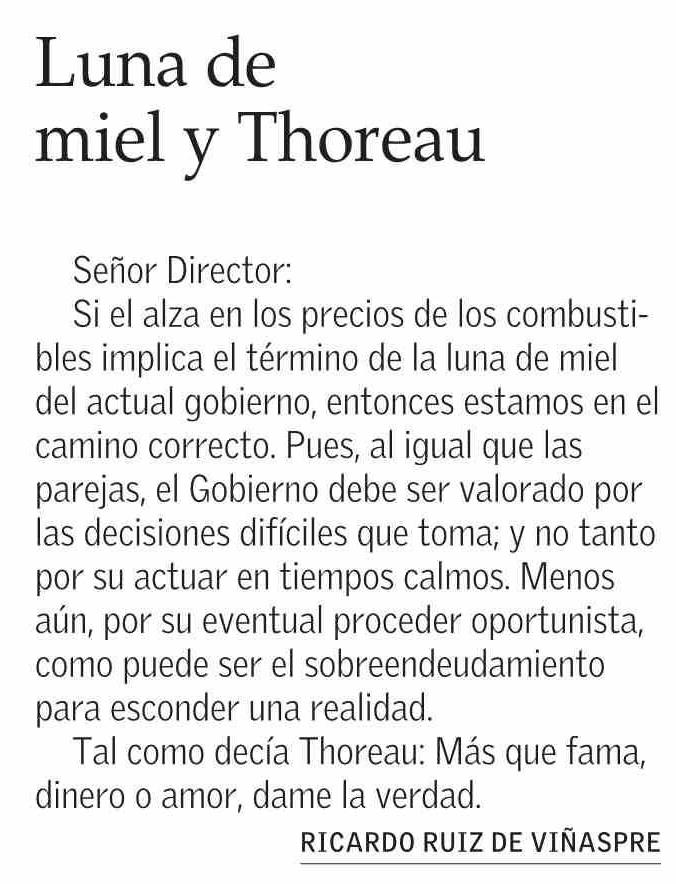 Cartas: Luna de miel y Thoreau