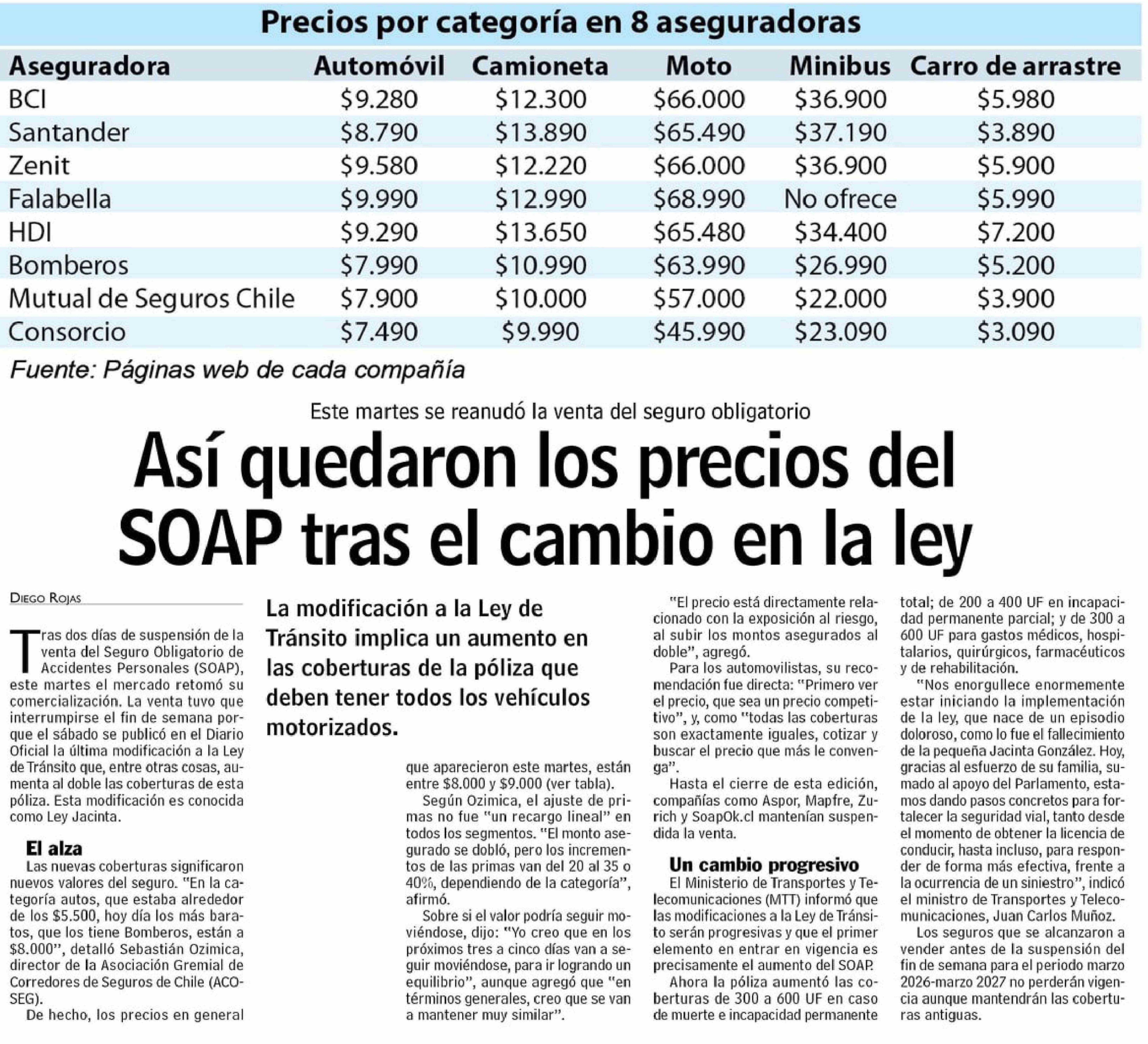 Así quedaron los precios del SOAP tras el cambio en la ley