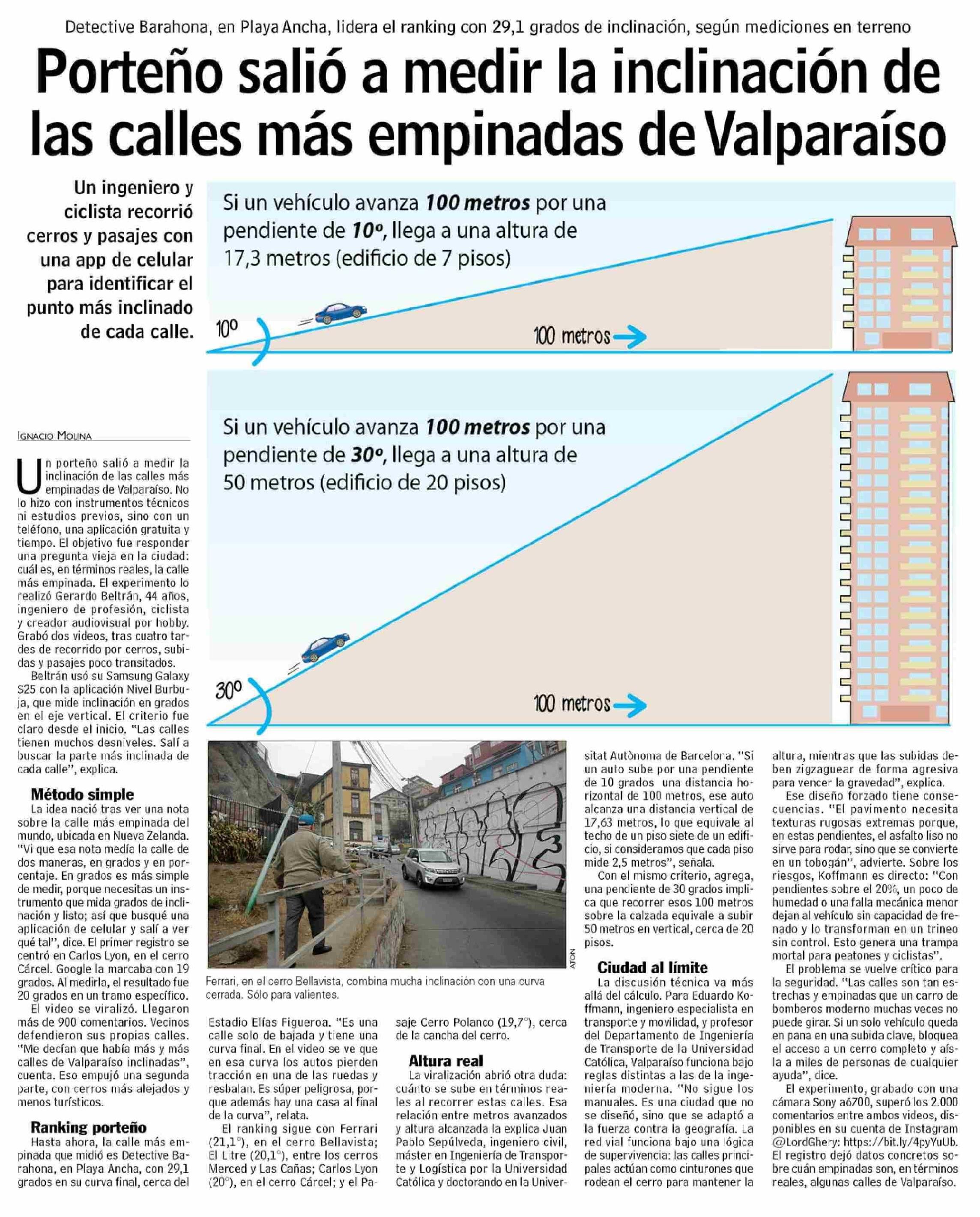 Porteño salió a medir la inclinación de las calles más empinadas de Valparaíso
