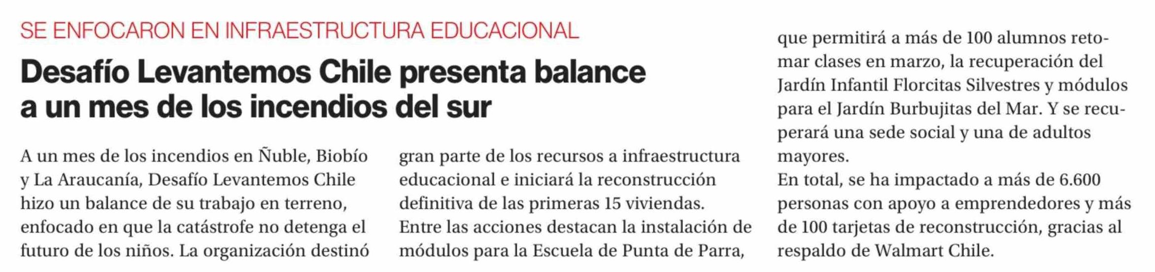 Desafío Levantemos Chile presenta balance a un mes de los incendios del sur