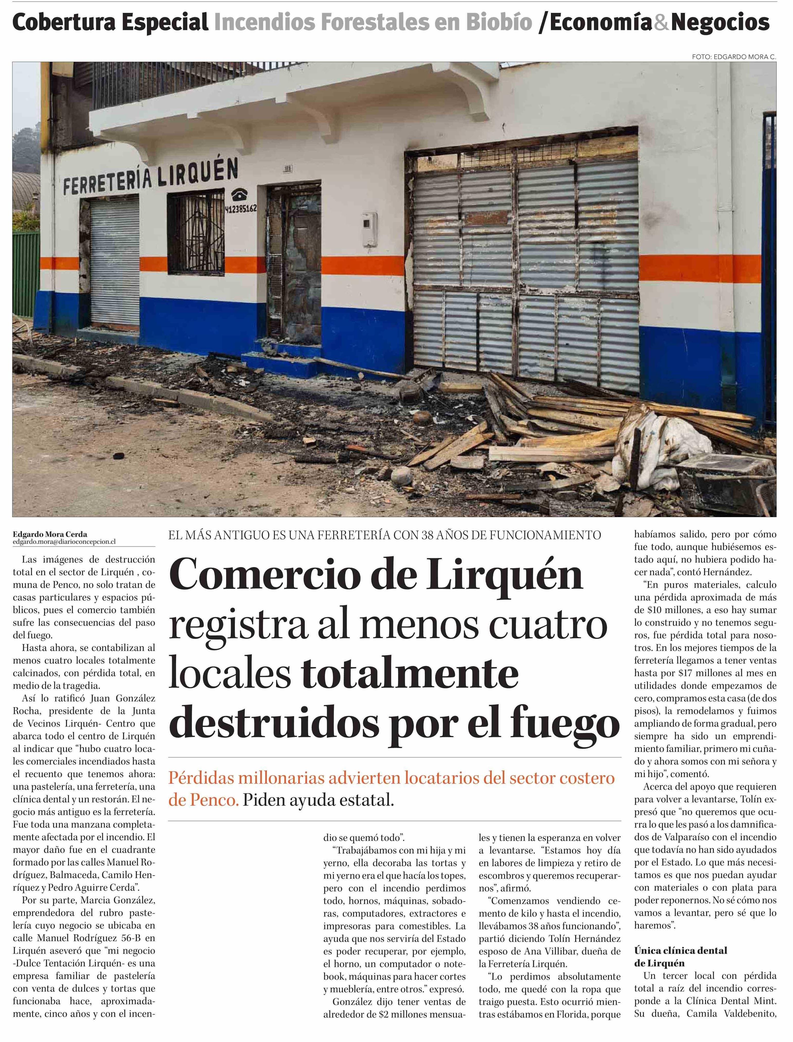 Comercio de Lirquén registra al menos cuatro locales totalmente destruidos por el fuego