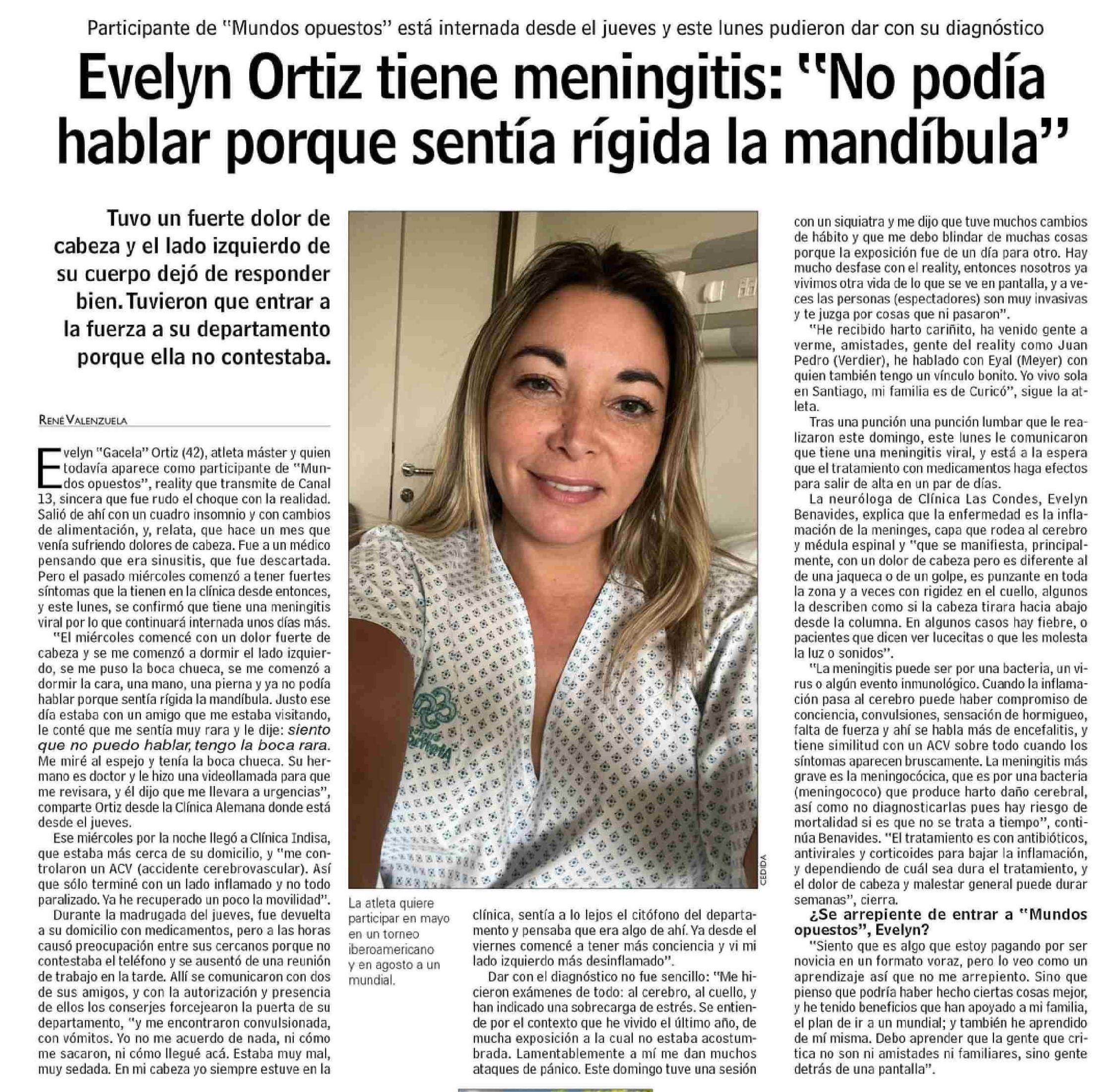 Evelyn Ortiz tiene meningitis: “No podía hablar porque sentía rígida la mandíbula”