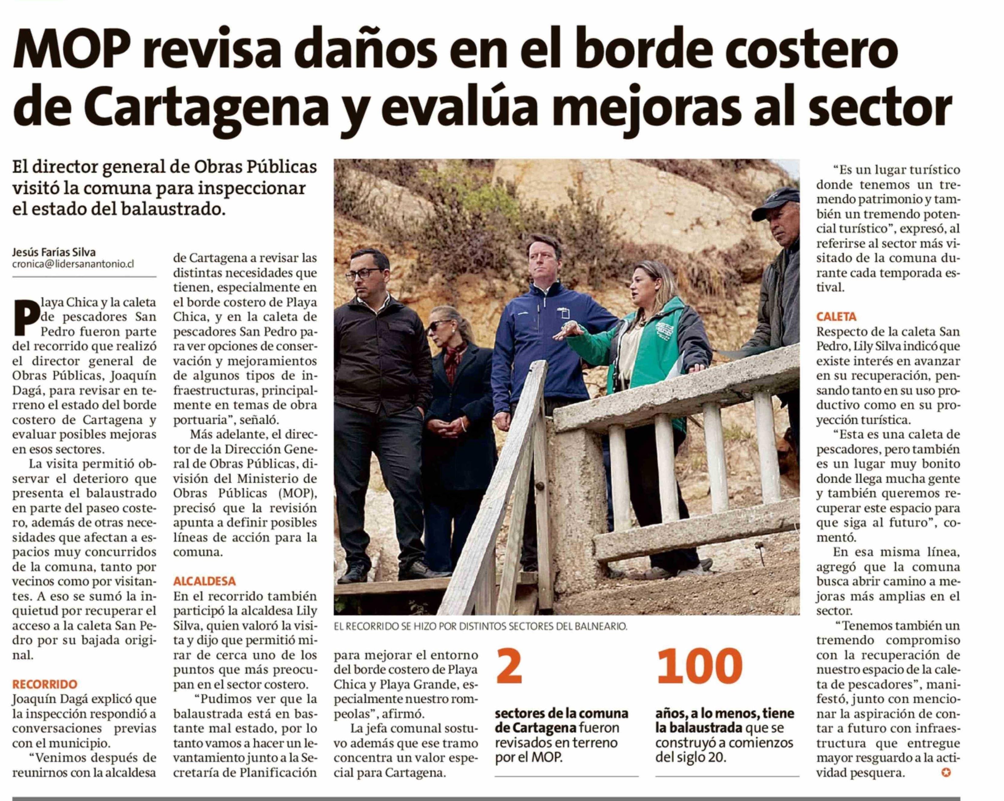 MOP revisa daños en el borde costero de Cartagena y evalúa mejoras al sector