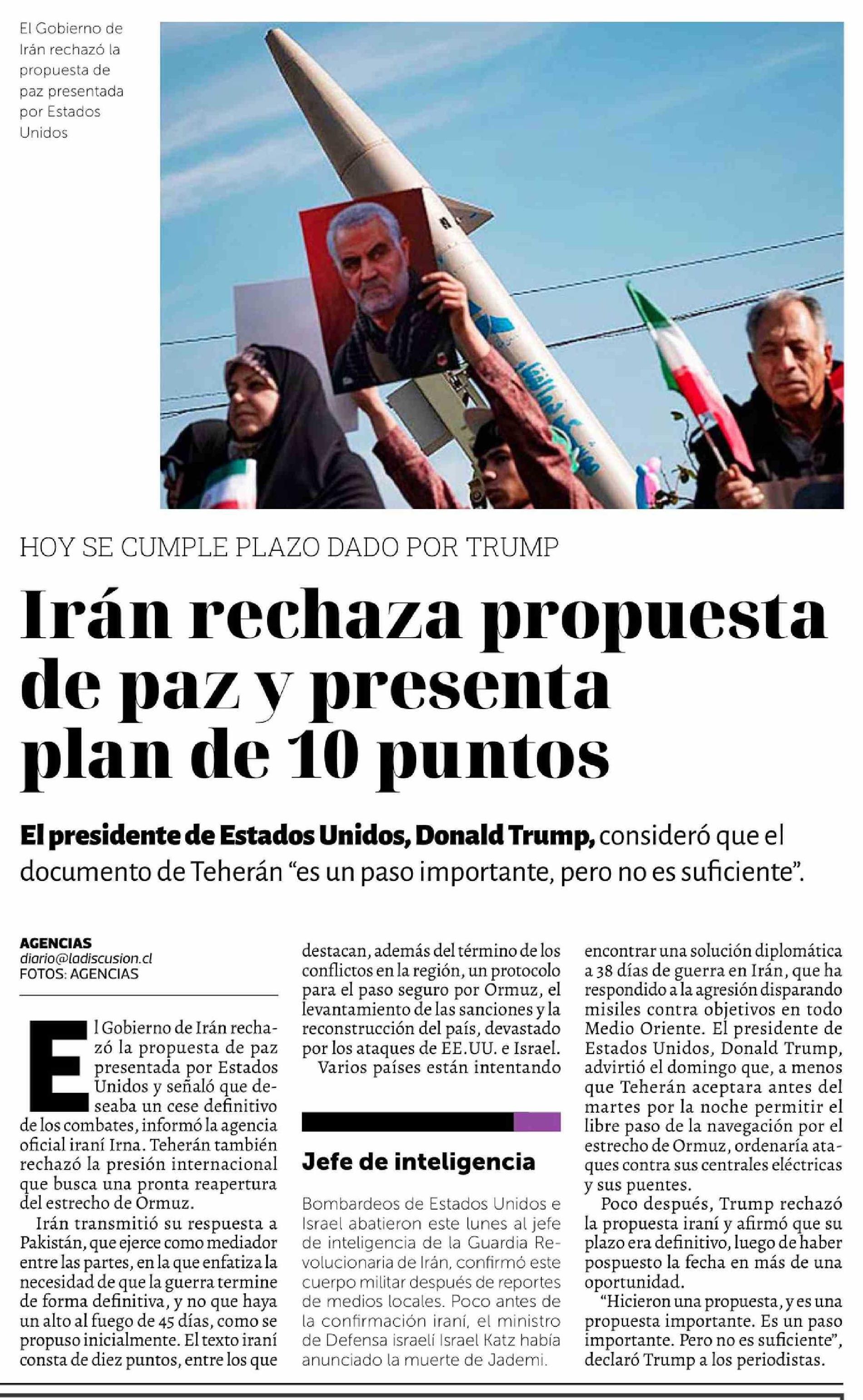 Irán rechaza propuesta de paz y presenta plan de 10 puntos