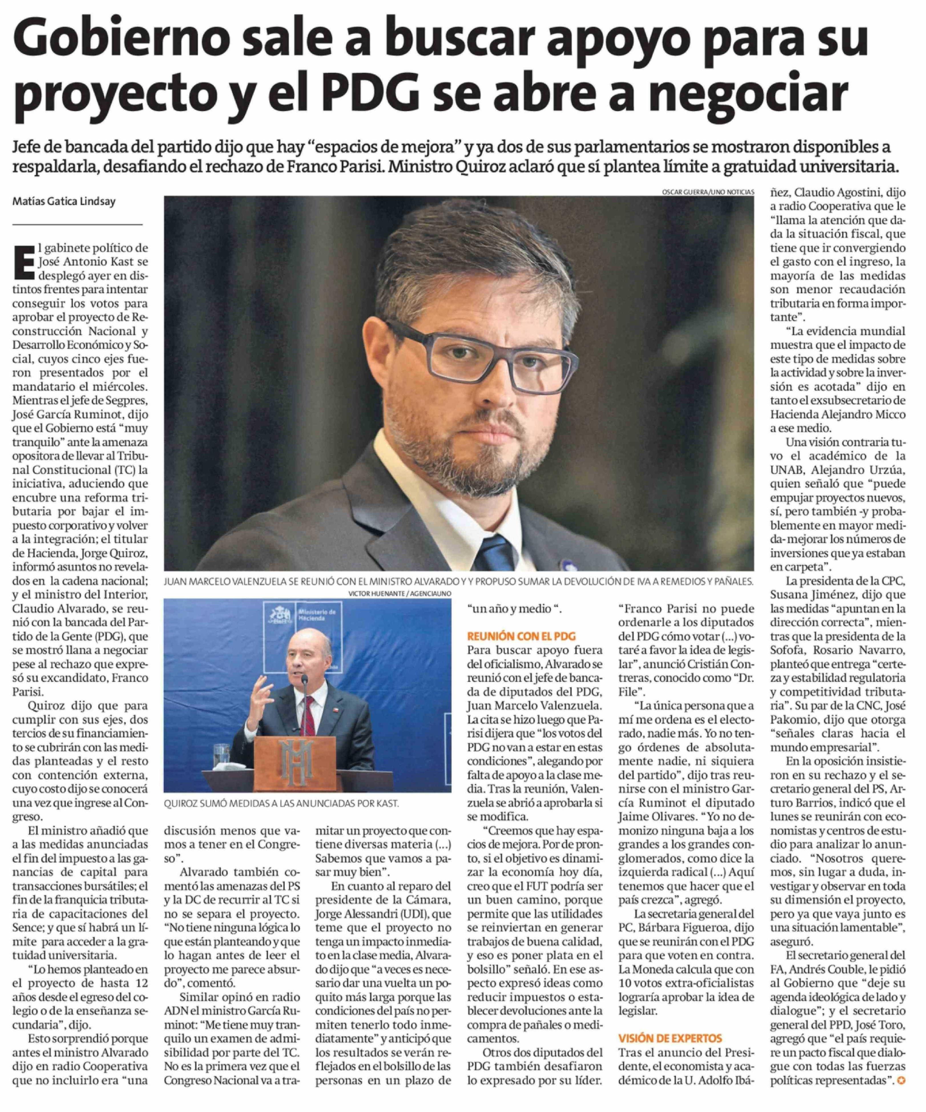 Gobierno sale a buscar apoyo para su proyecto y el PDG se abre a negociar