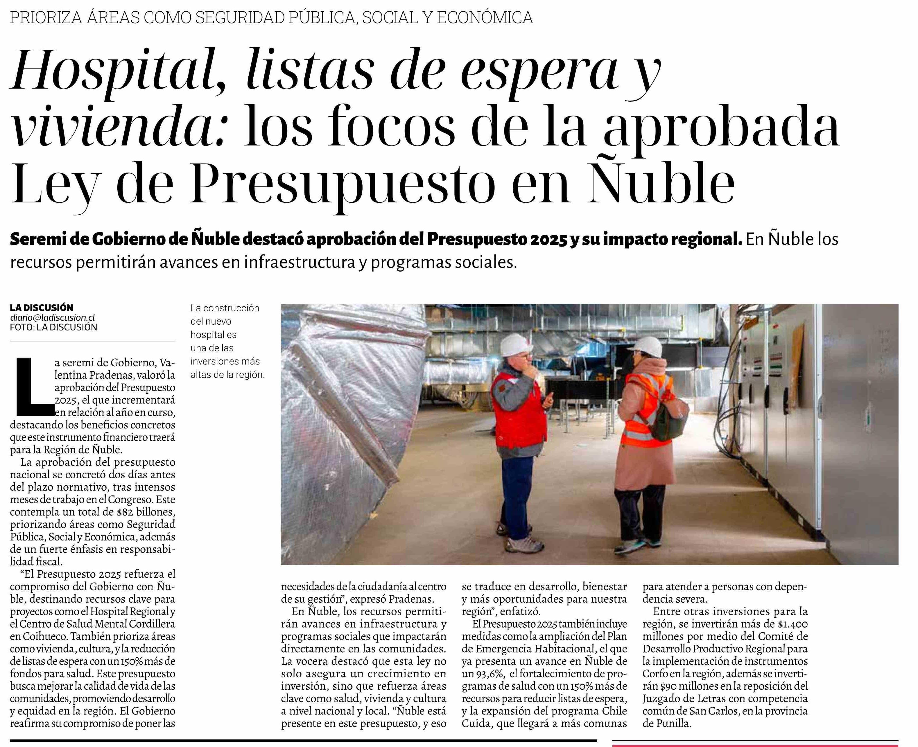 Hospital, listas de espera y vivienda: los focos de la aprobada Ley de Presupuesto en Ñuble