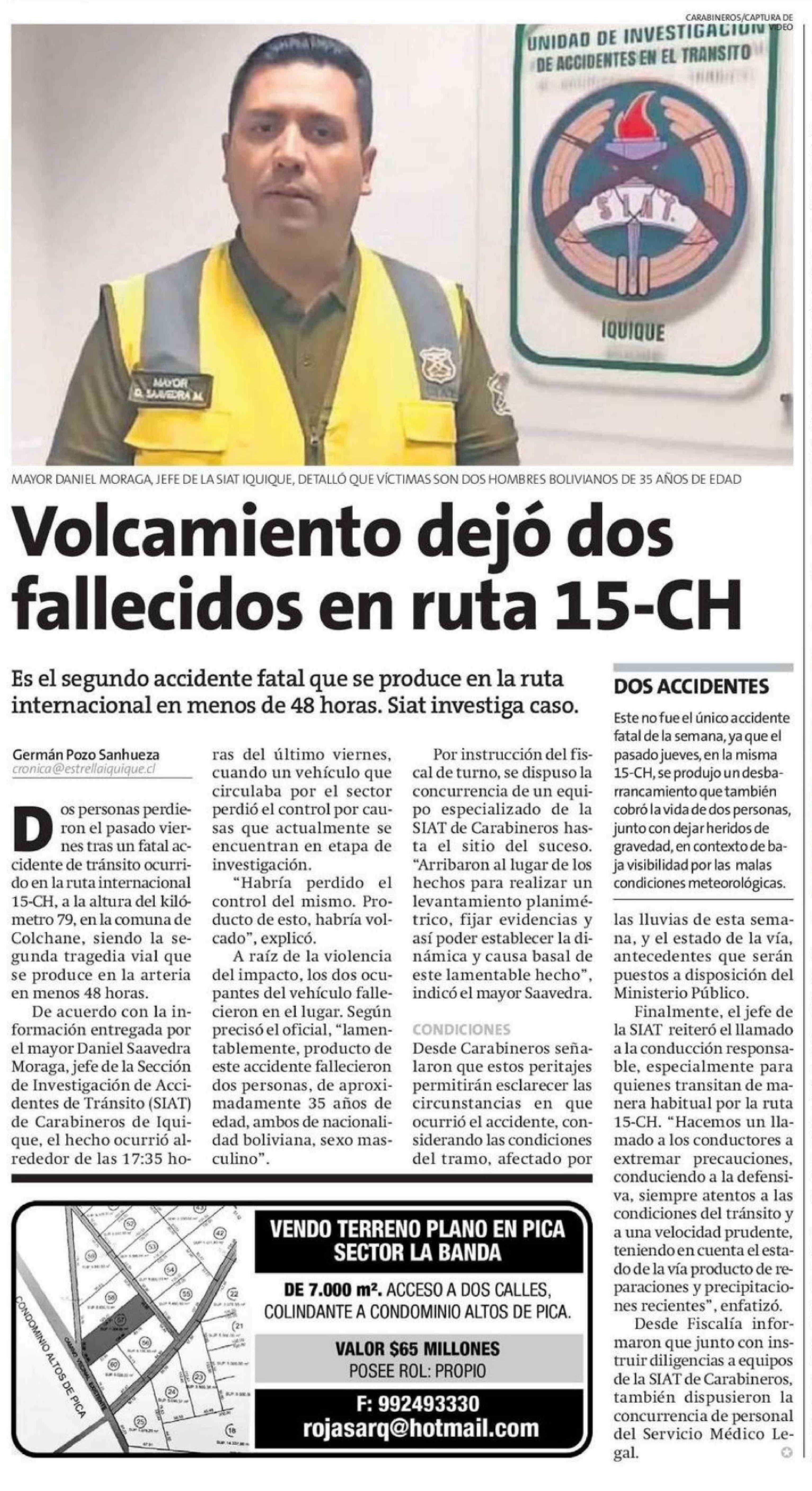 Volcamiento dejó dos fallecidos en ruta 15-CH