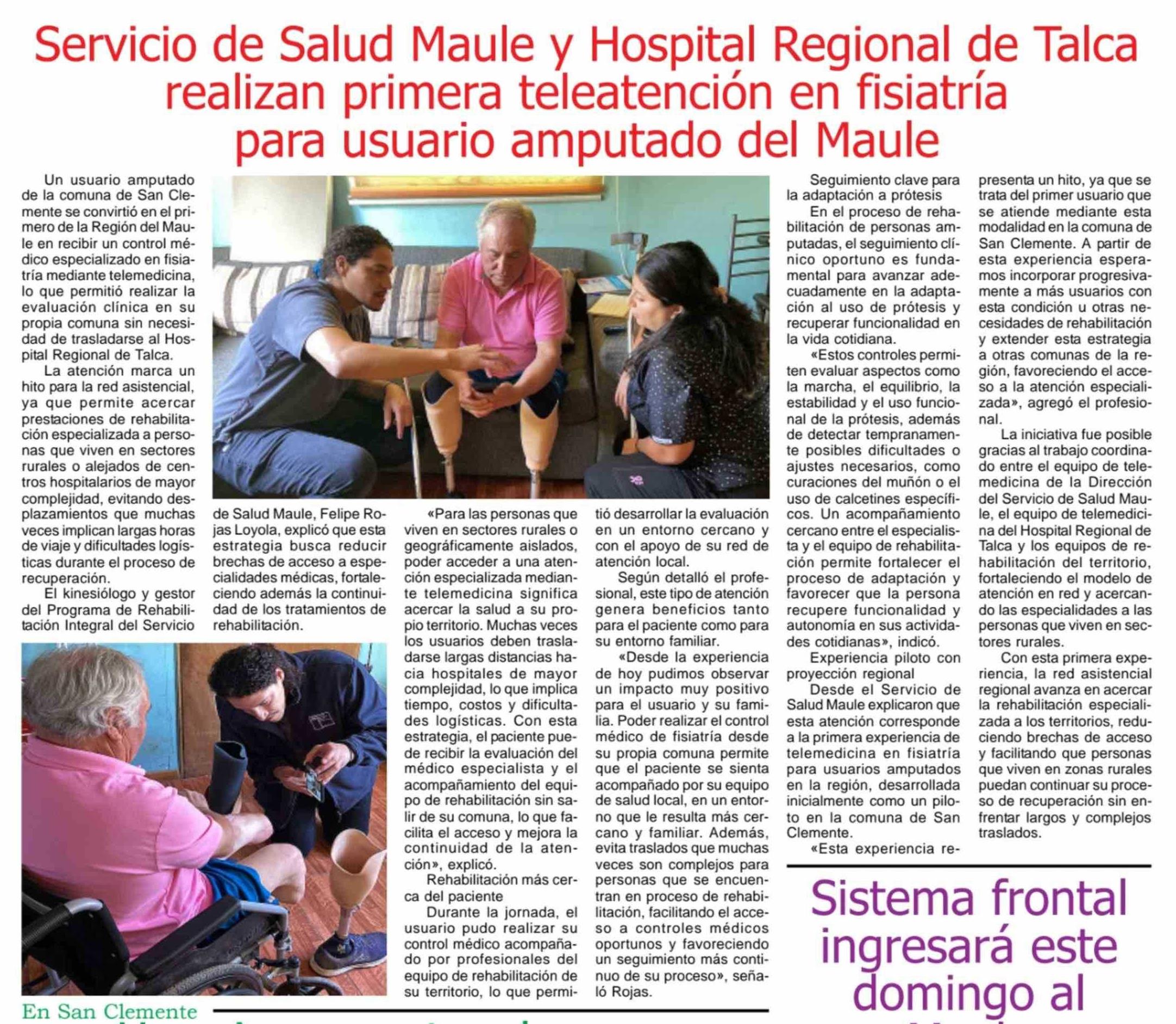 Servicio de Salud Maule y Hospital Regional de Talca realizan primera teleatención en fisiatria para usuario amputado del Maule