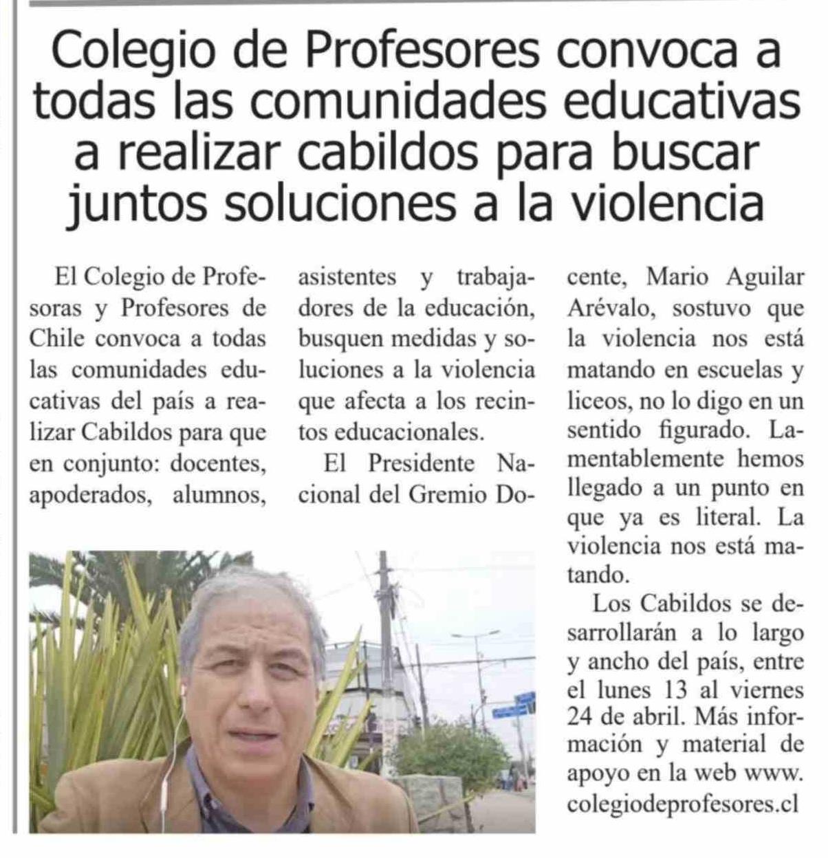 Colegio de Profesores convoca a todas las comunidades educativas a realizar cabildos para buscar juntos soluciones a la violencia