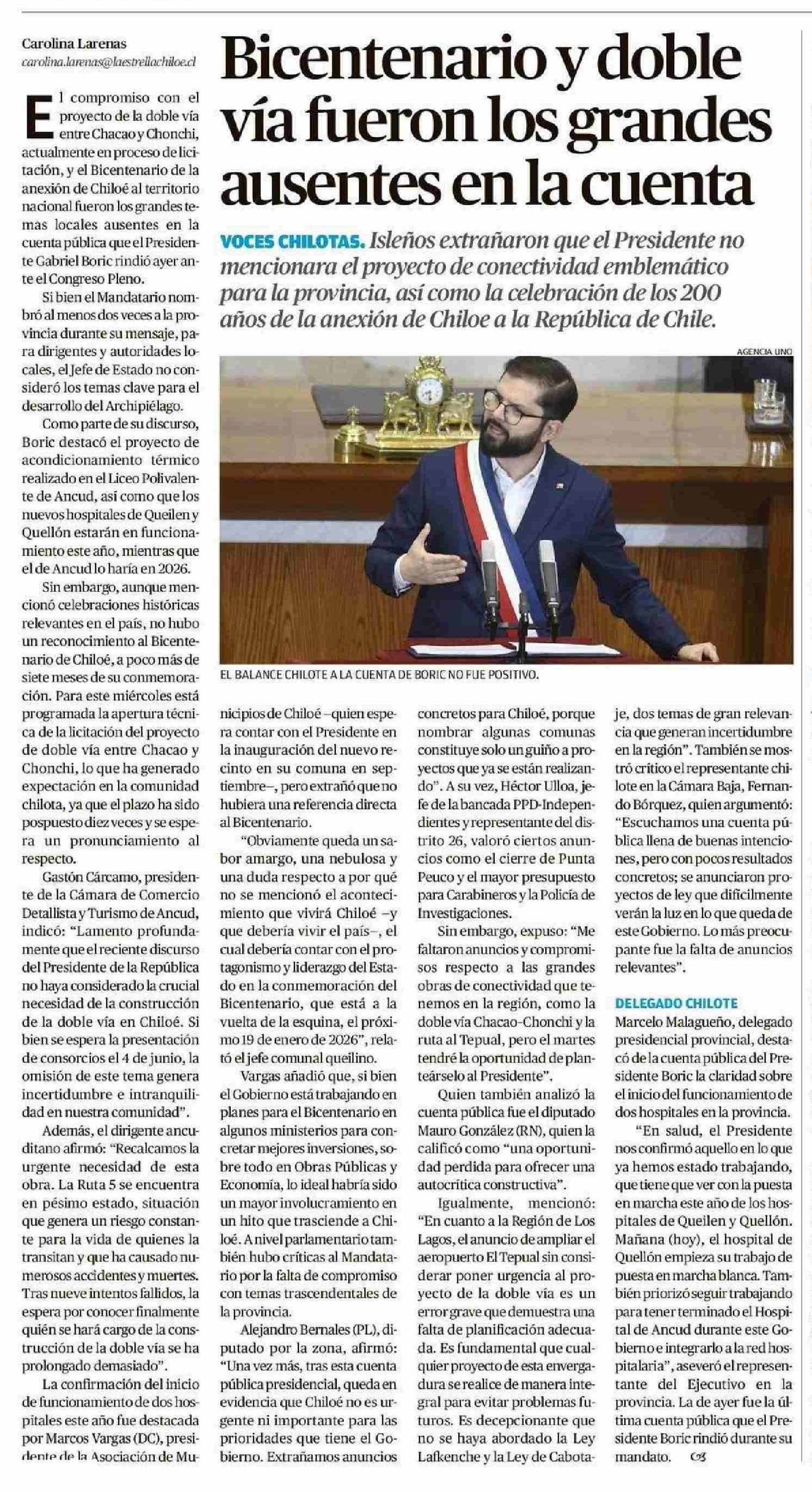 Bicentenario y doble vía fueron los grandes ausentes en la cuenta