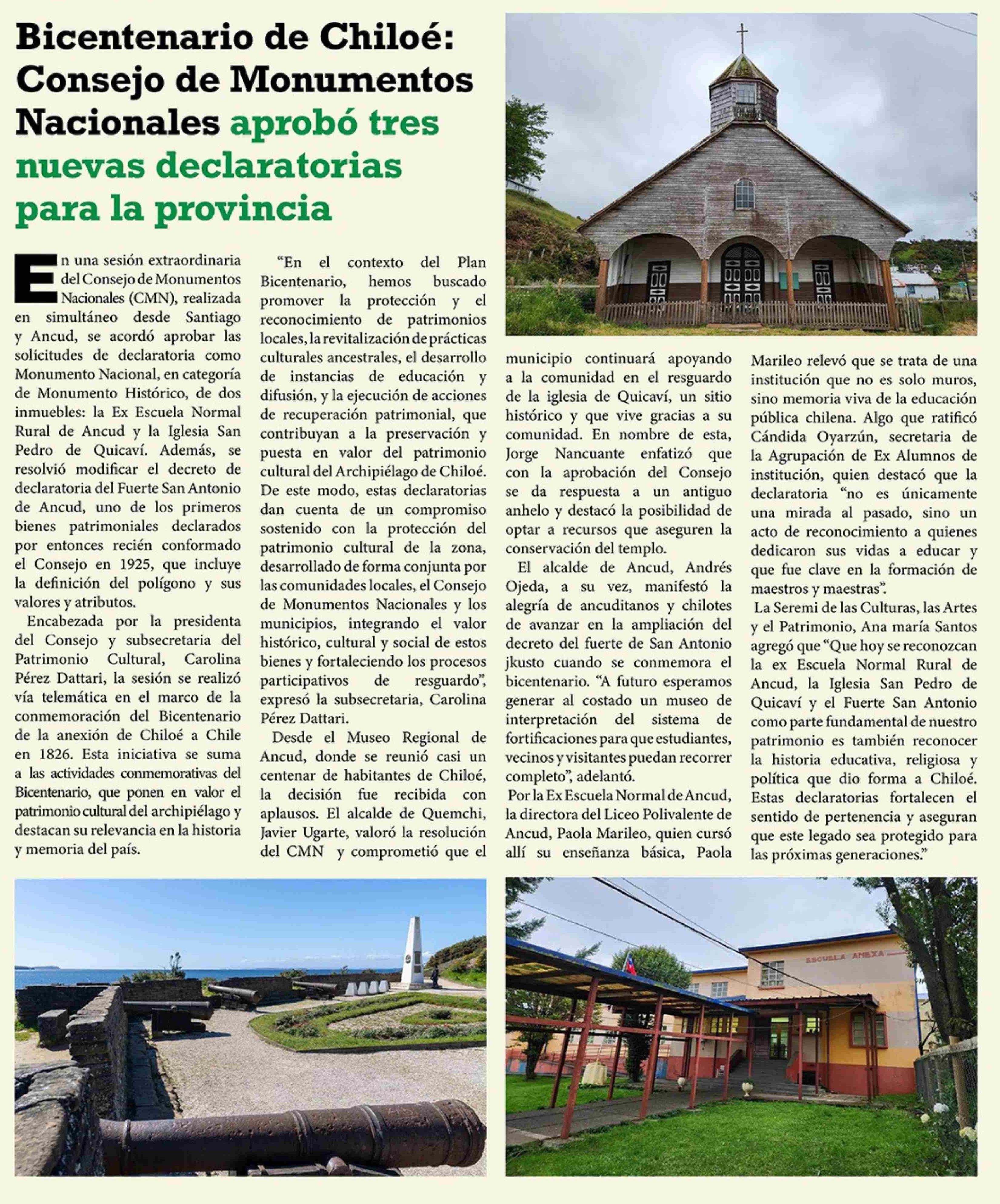 Bicentenario de Chiloé: Consejo de Monumentos Nacionales aprobó tres nuevas declaratorias para la provincia