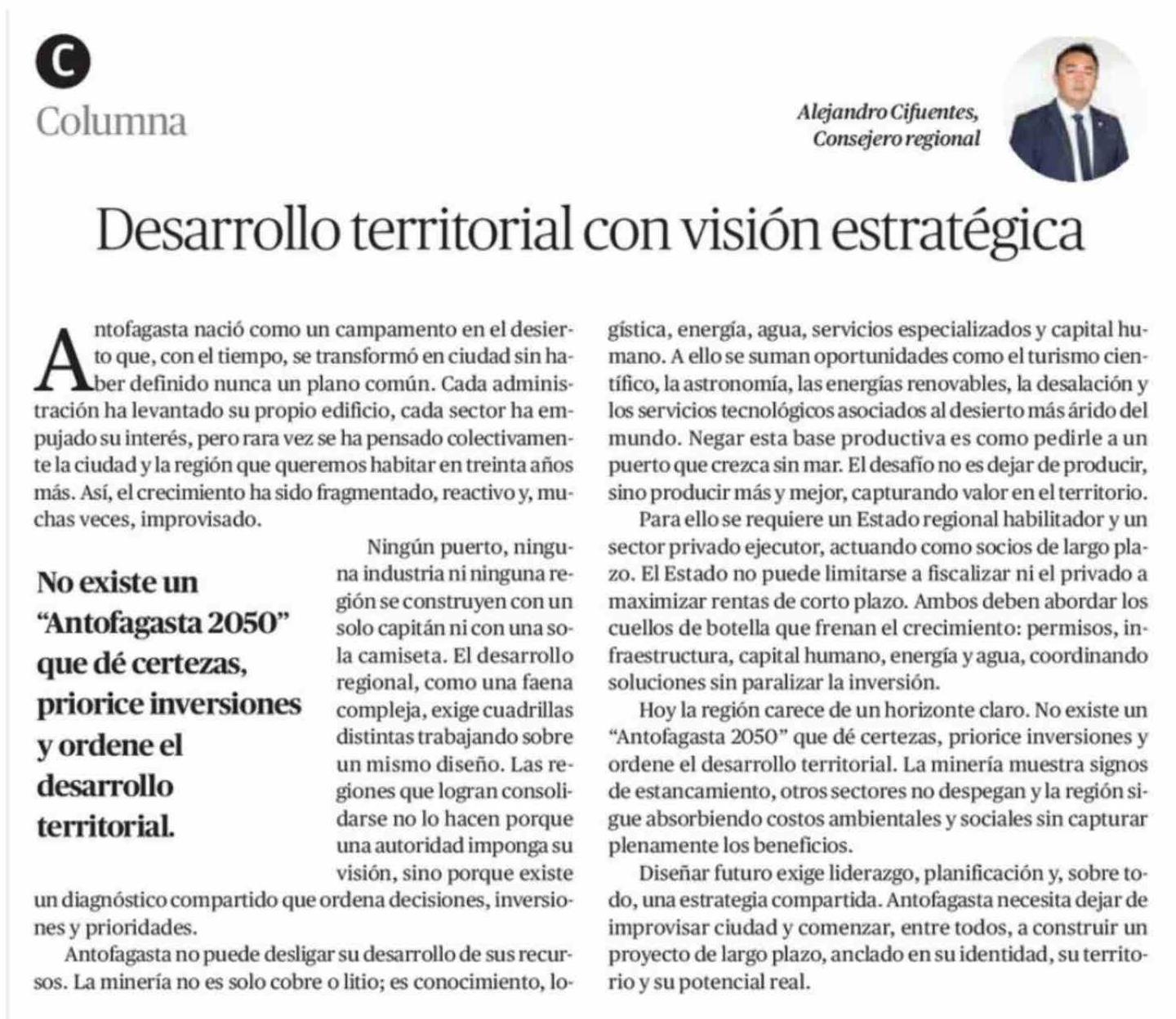 Columnas de Opinión: Desarrollo territorial con visión estratégica