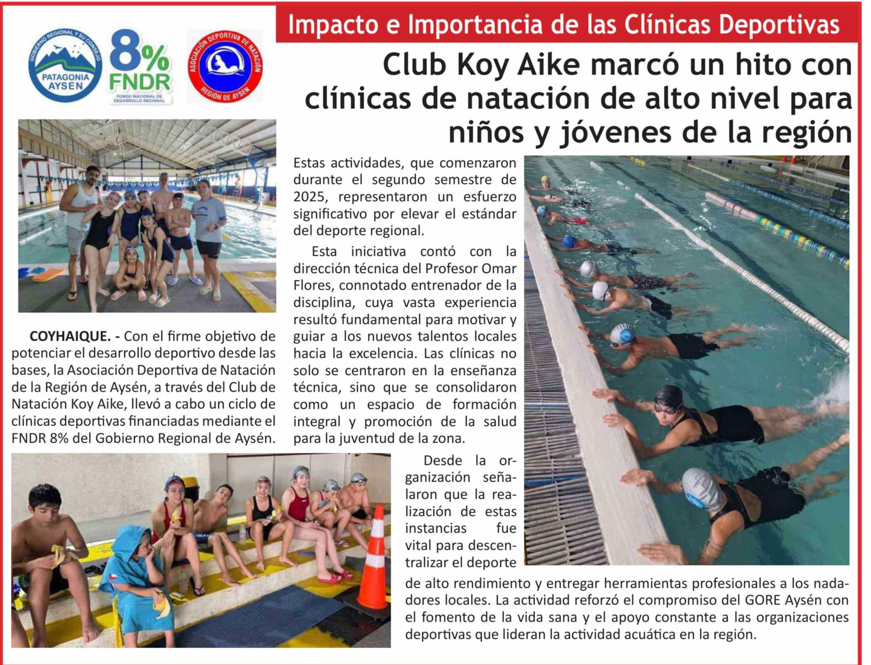 Club Koy Aike marcó un hito con clínicas de natación de alto nivel para niños y jóvenes de la región