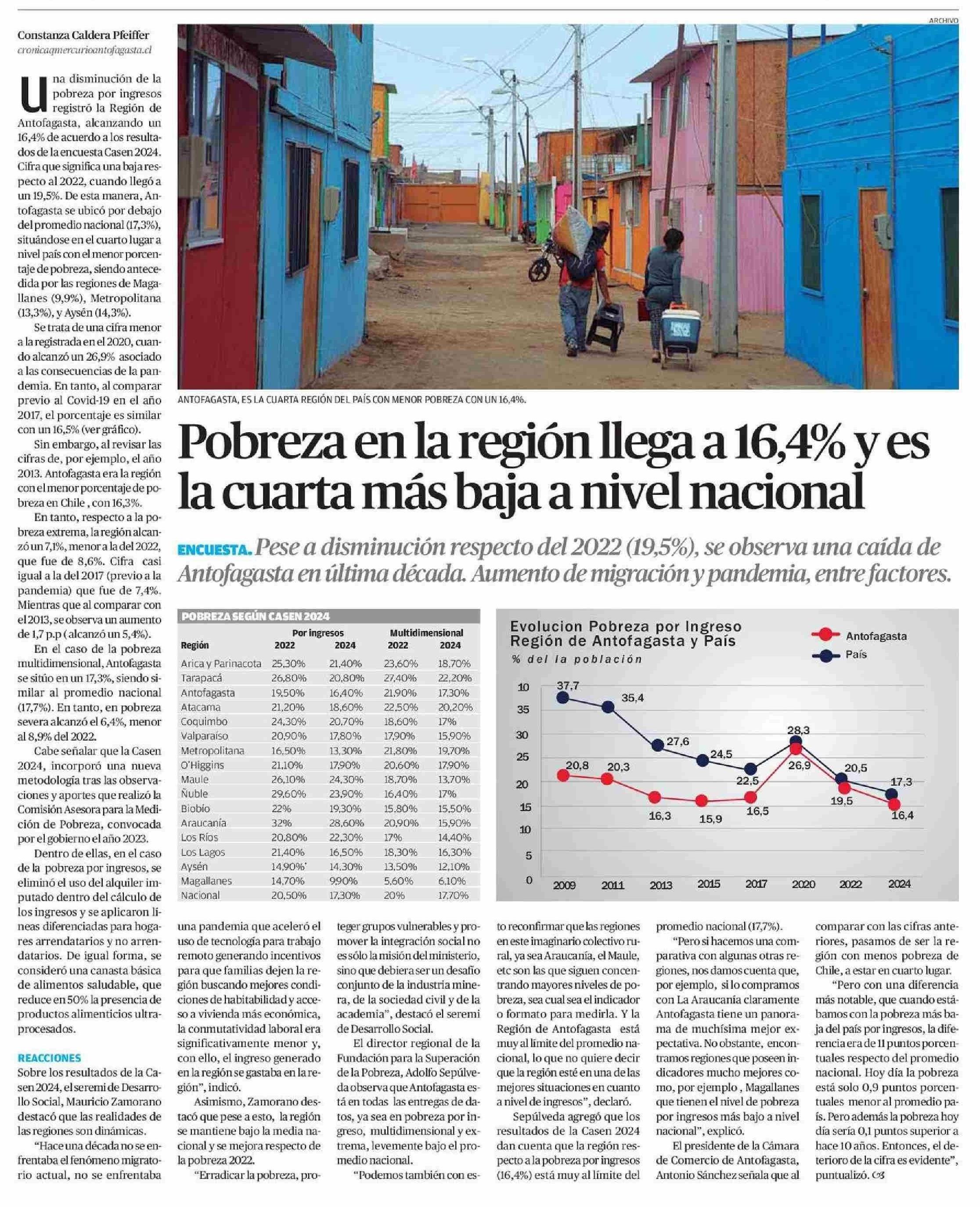 Pobreza en la región llega a 16,4% y es la cuarta más baja a nivel nacional