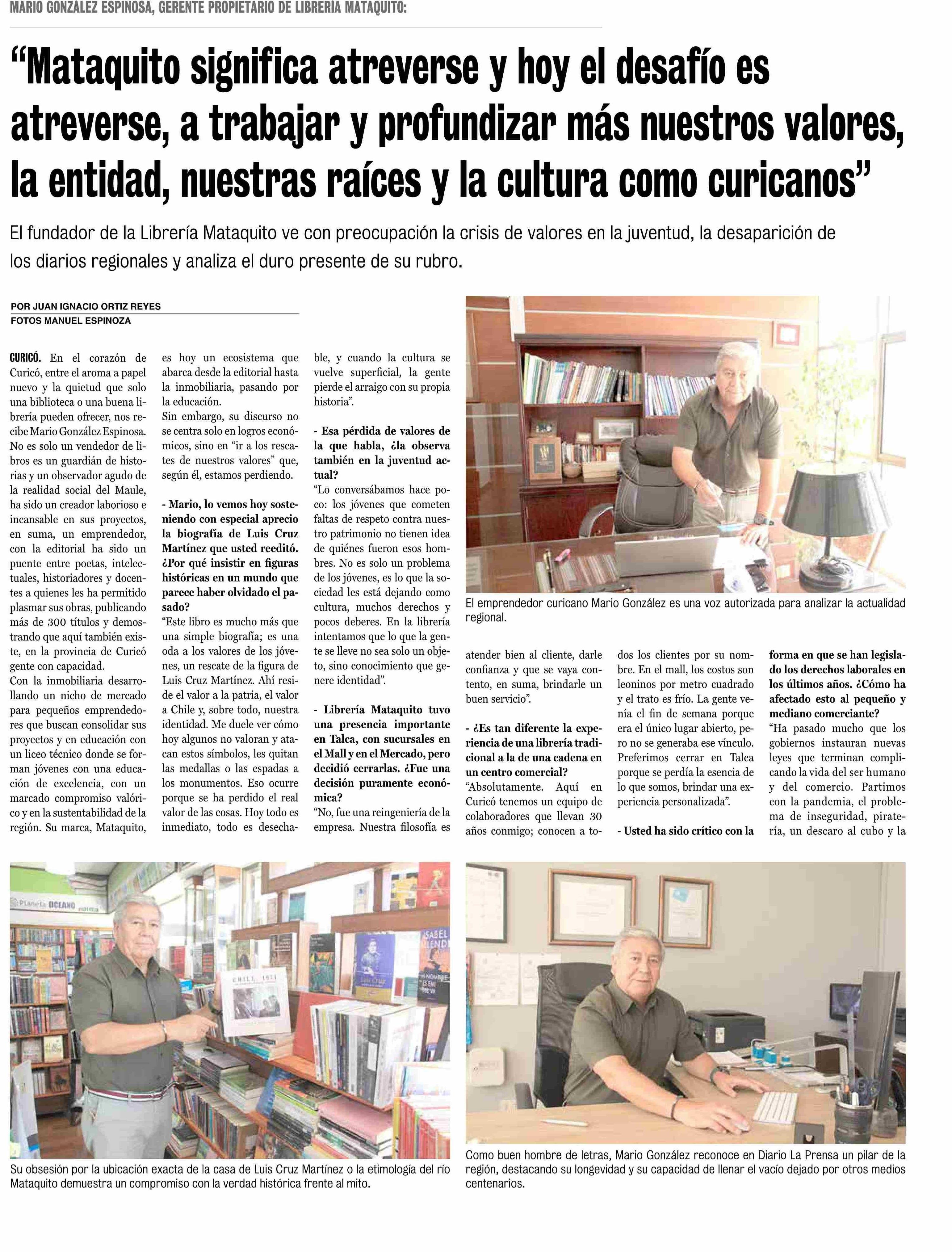 | Título: | "Mataquito significa atreverse y hoy el desafío es atreverse, a trabajar y profundizar más nuestros valores, la entidad, nuestras raíces y la cultura como curicanos" |