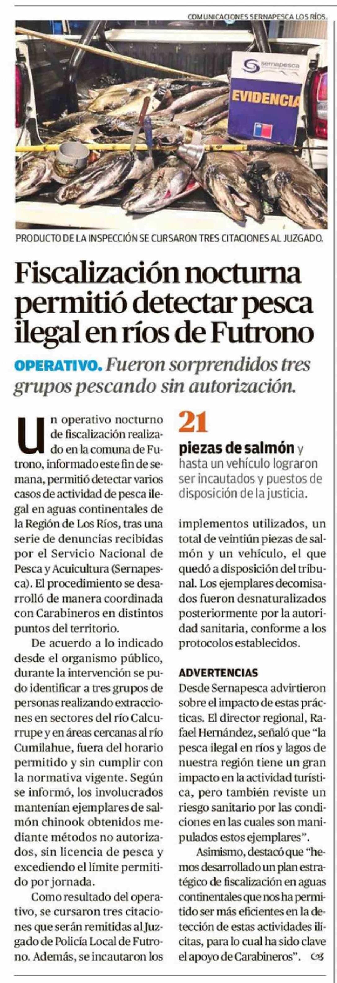 Fiscalización nocturna permitió detectar pesca ilegal en ríos de Futrono