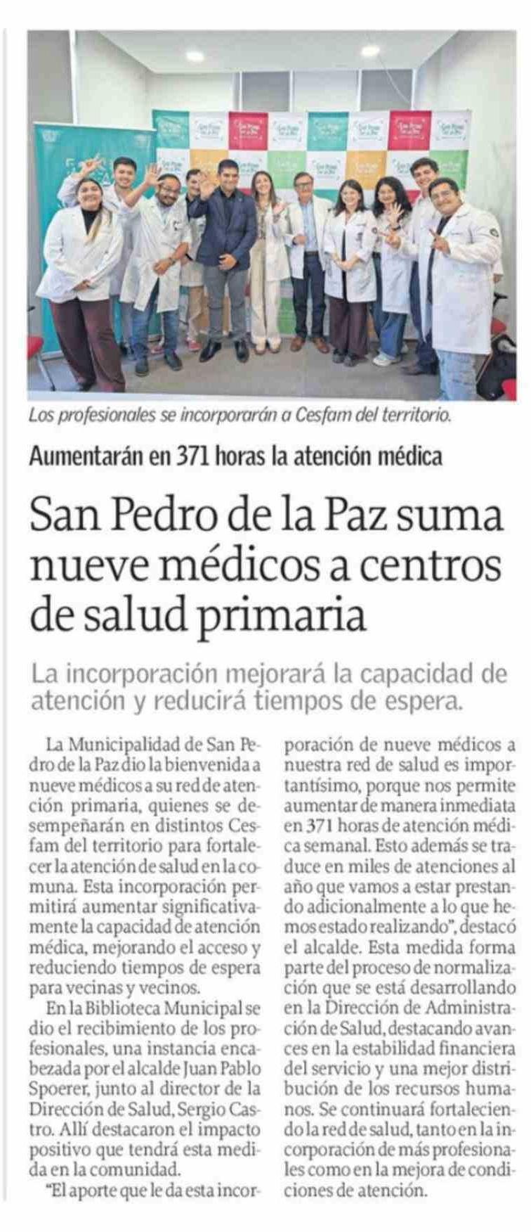 San Pedro de la Paz suma nueve médicos a centros de salud primaria