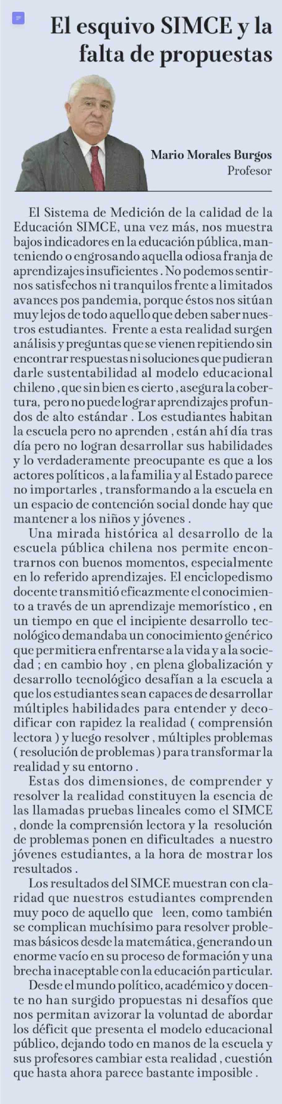 Columnas de Opinión: El esquivo SIMCE y la falta de propuestas