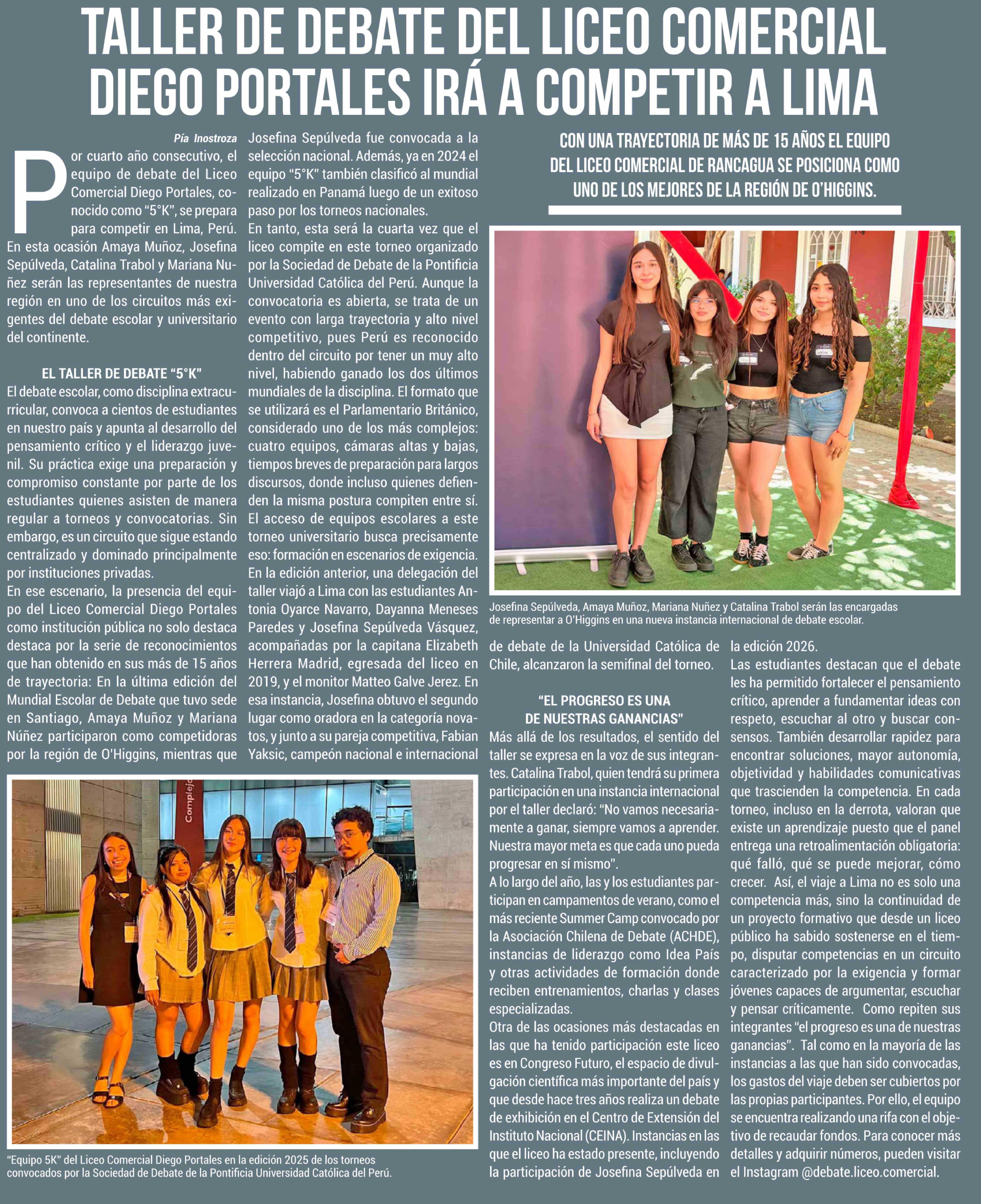 TALLER DE DEBATE DEL LICEO COMERCIAL DIEGO PORTALES IRÁ A COMPETIR A LIMA