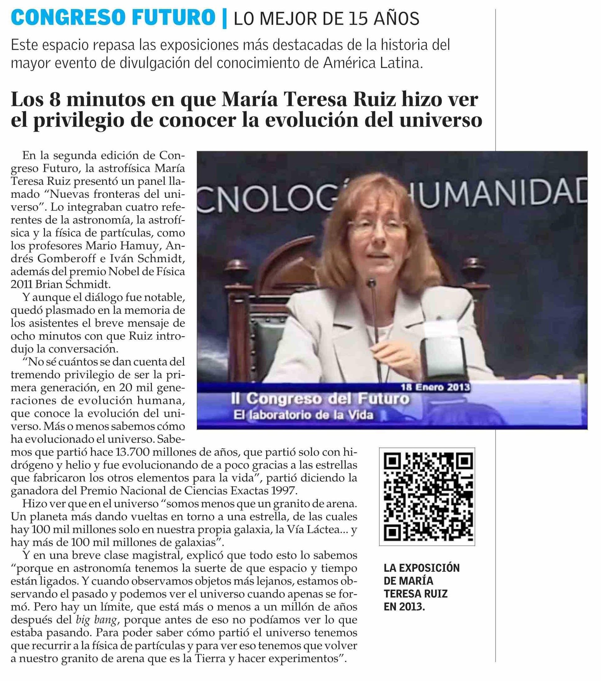 Los 8 minutos en que María Teresa Ruiz hizo ver el privilegio de conocer la evolución del universo
