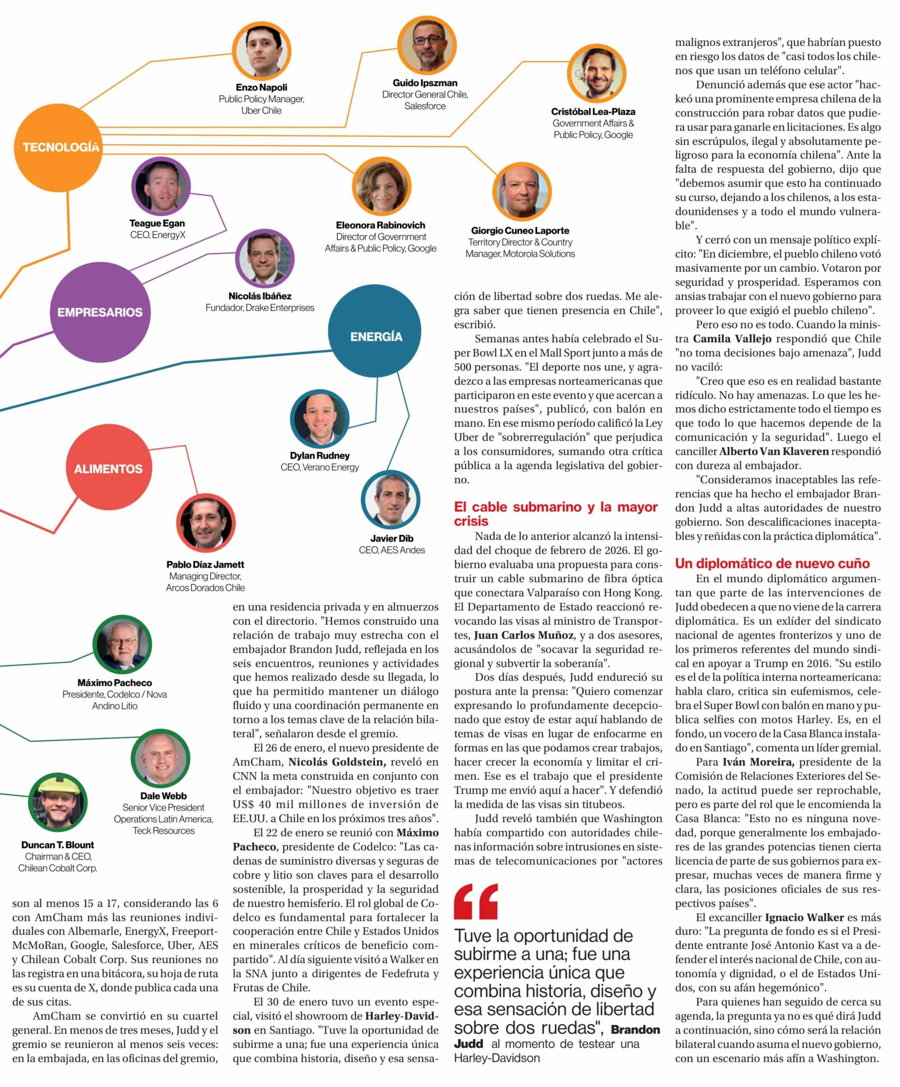 Brandon Judd: 17 reuniones empresariales y una misión política que incomoda a La Moneda