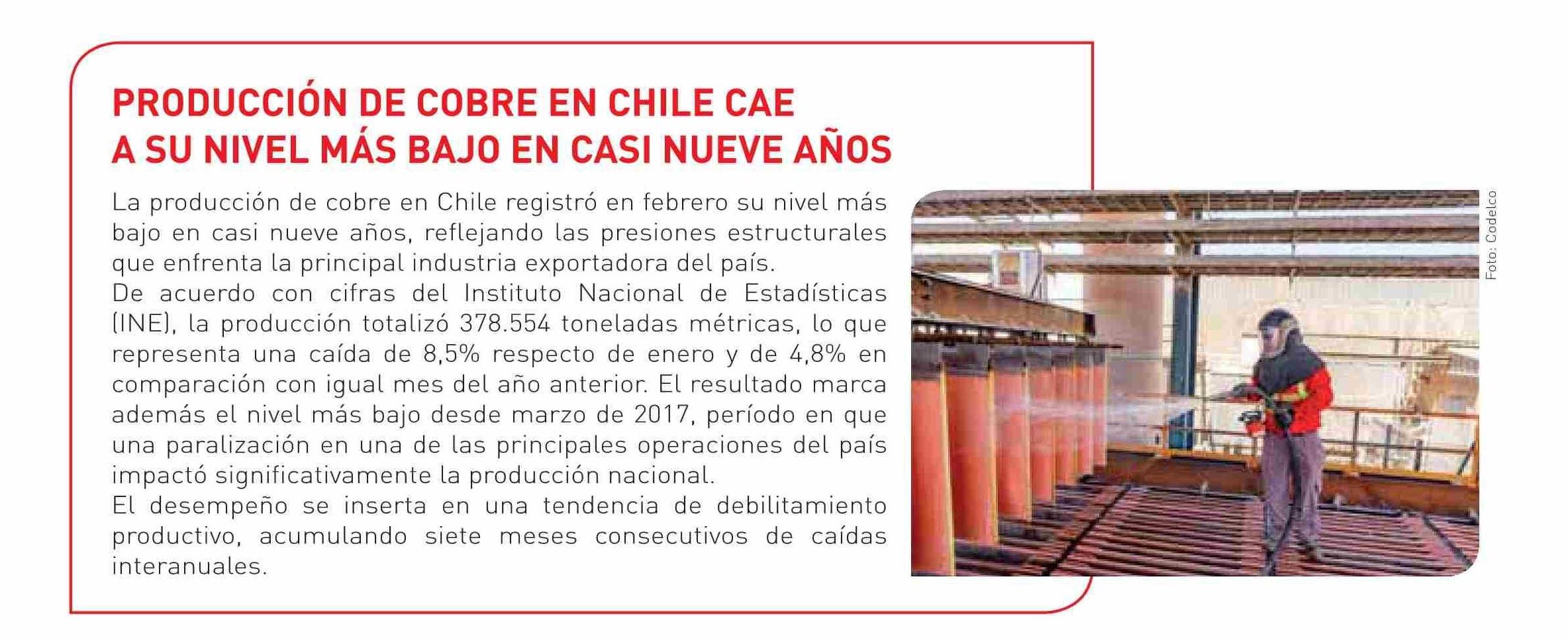 PRODUCCIÓN DE COBRE EN CHILE CÁE Á SU NIVEL MÁS BÁJO EN CÁSI NUEVE ÁÑOS