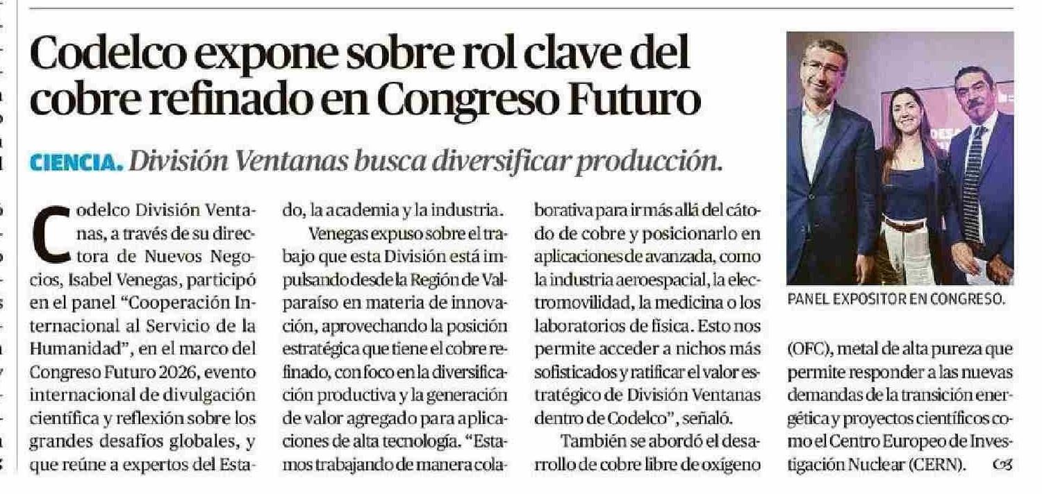 Codelco expone sobre rol clave del cobre refinado en Congreso Futuro