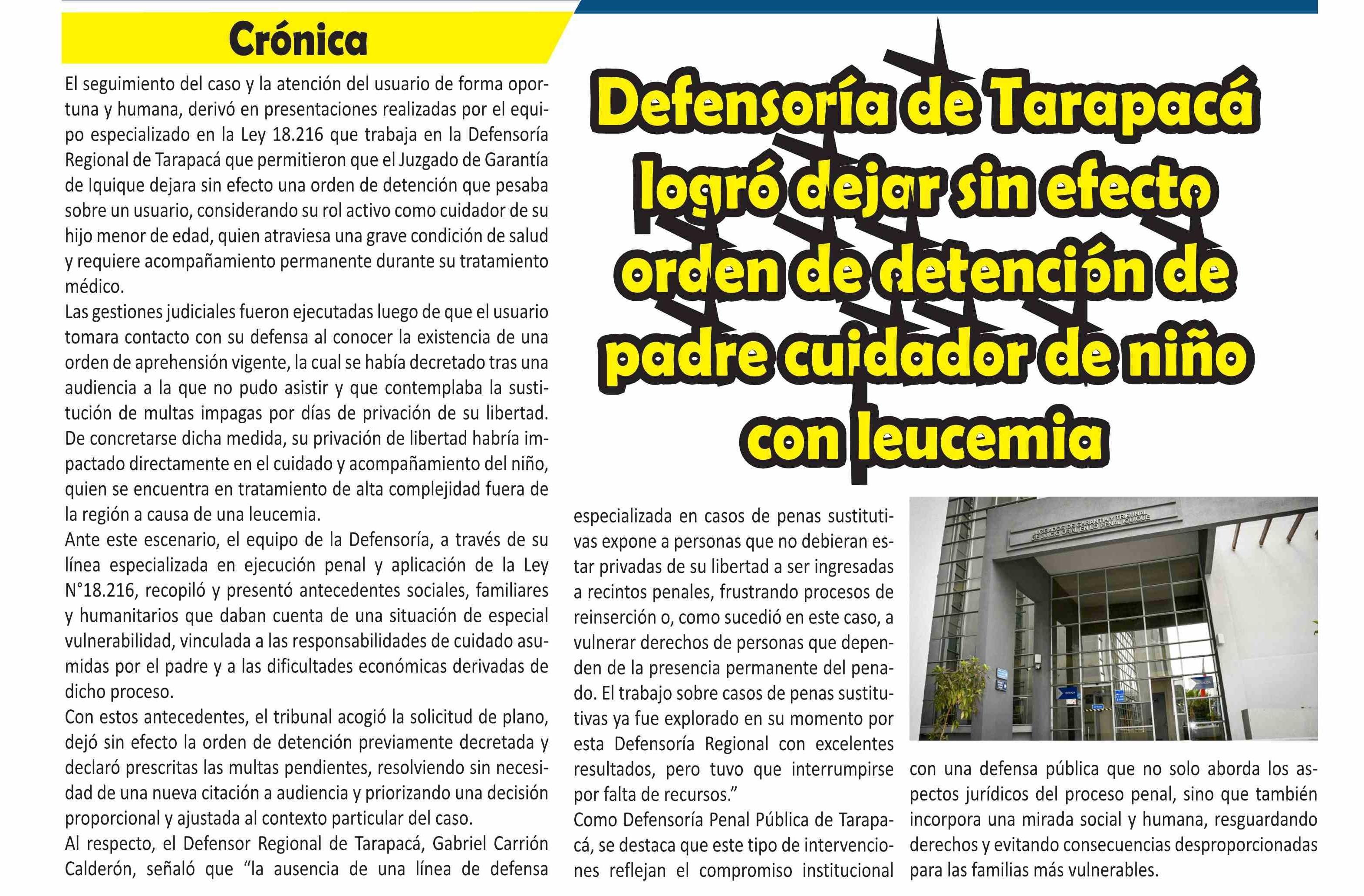 Defensoria de Tarapacá logró dejar sin efecto orden de detención de padre cuidador de niño con leucemia
