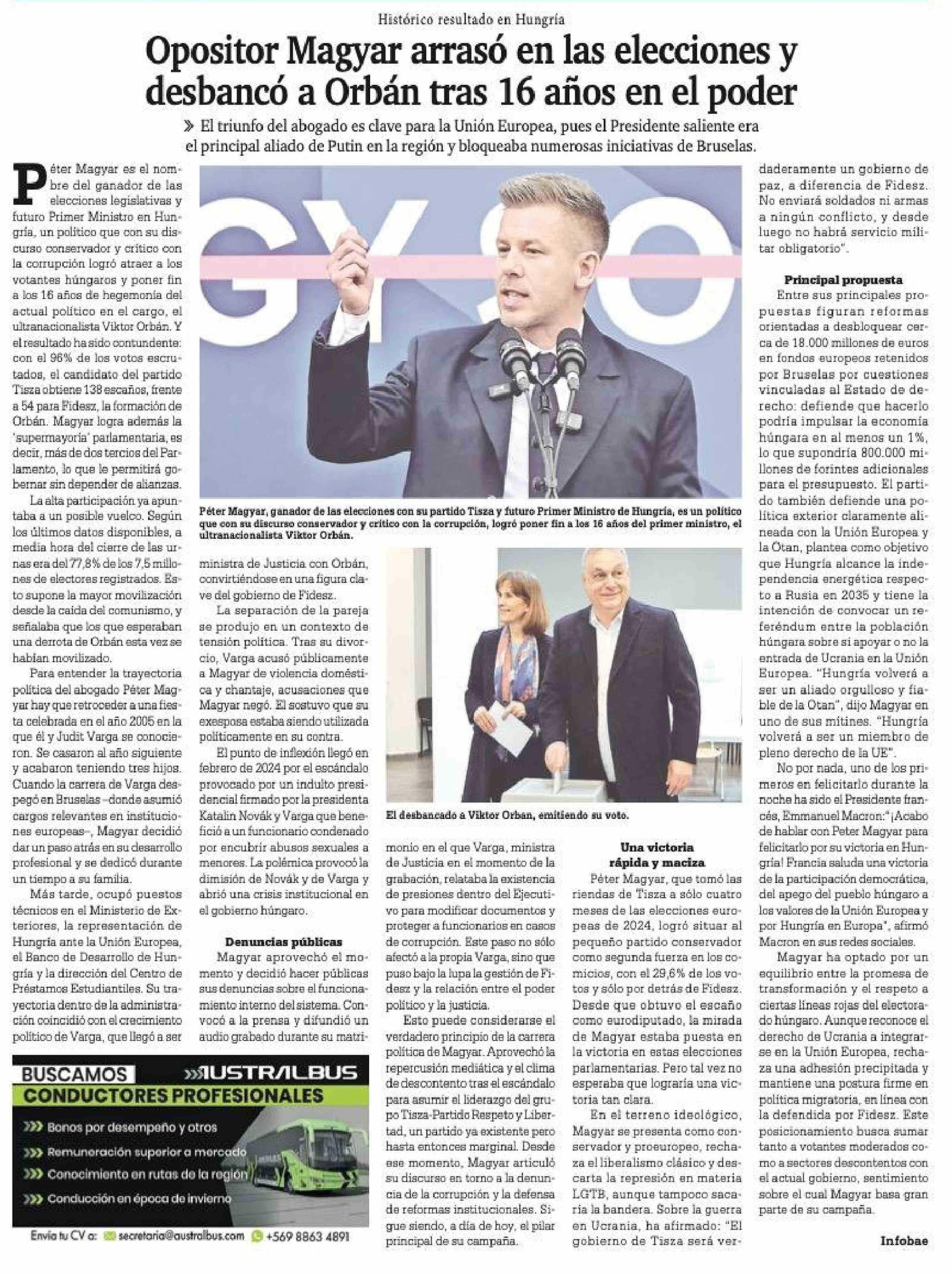Opositor Magyar arrasó en las elecciones y desbancó a Orbán tras 16 años en el poder