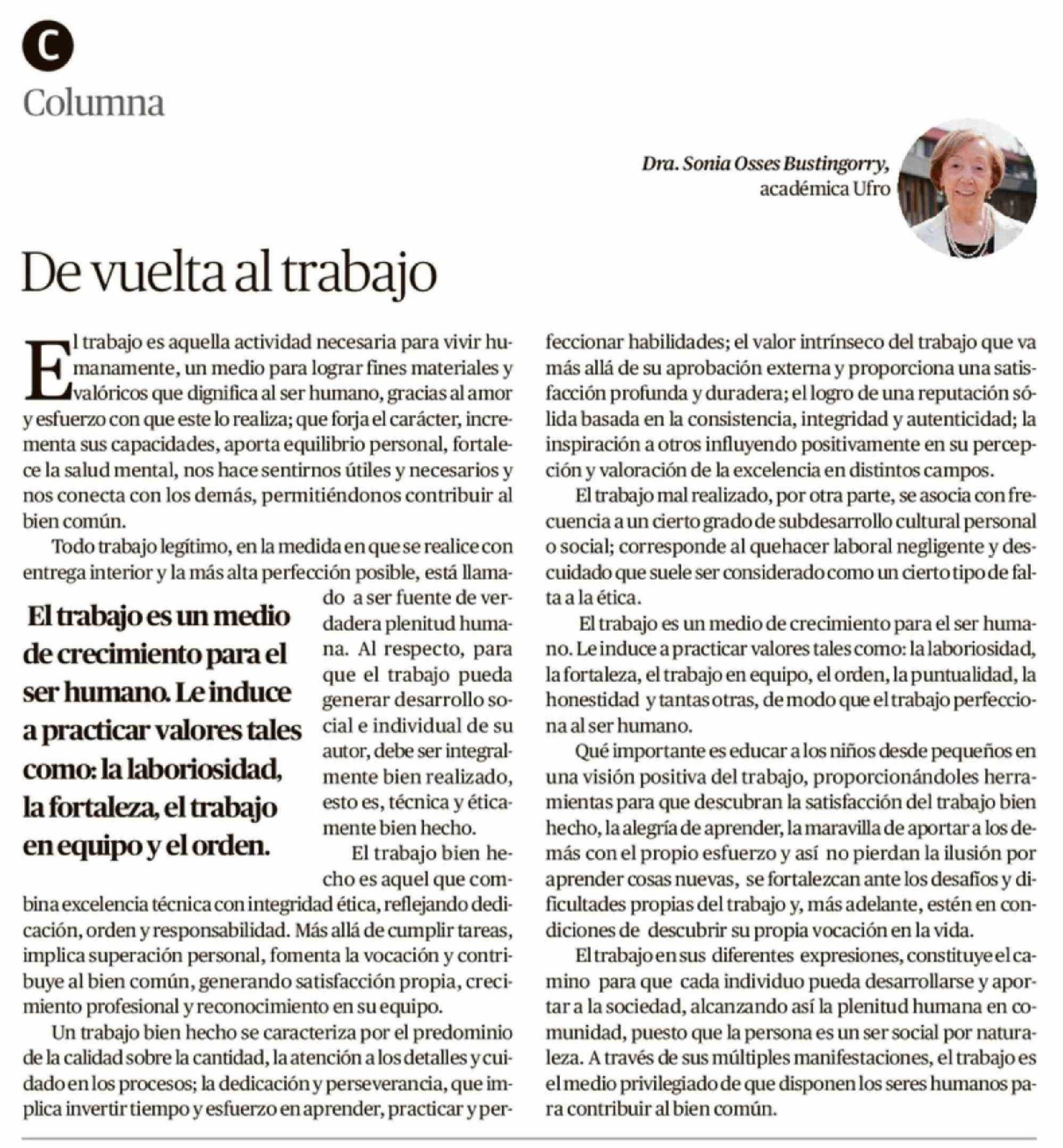 Columnas de Opinión: De vuelta al trabajo