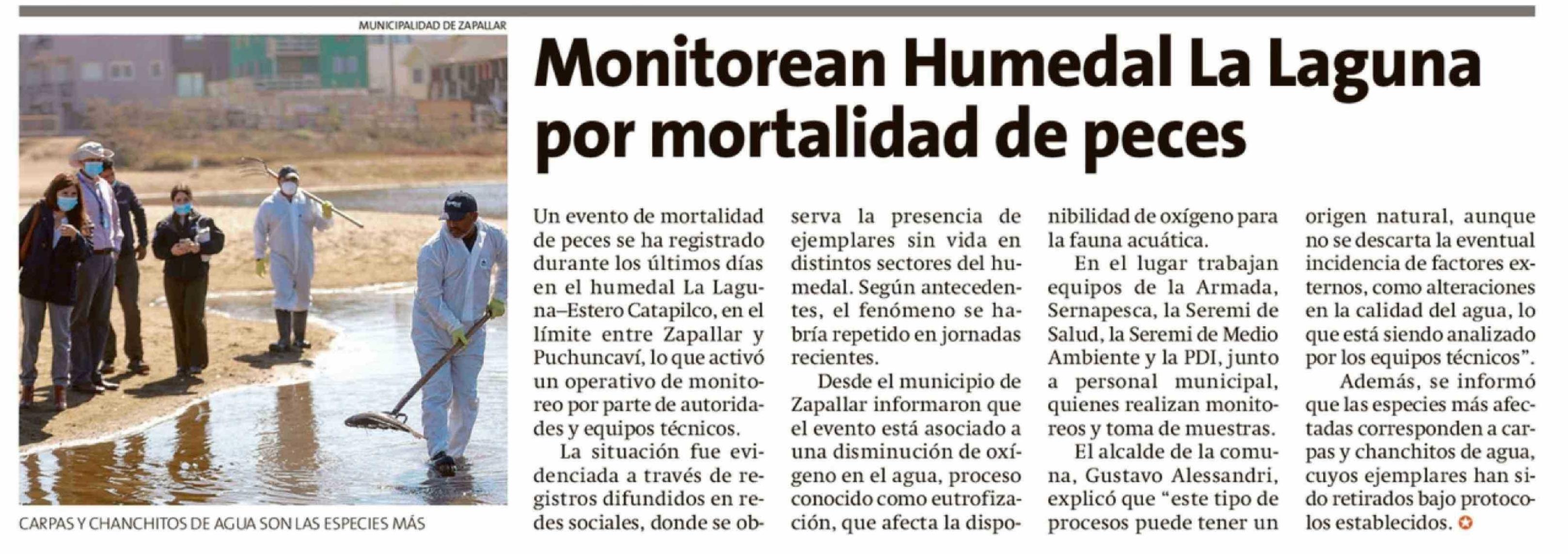 Monitorean Humedal La Laguna por mortalidad de peces