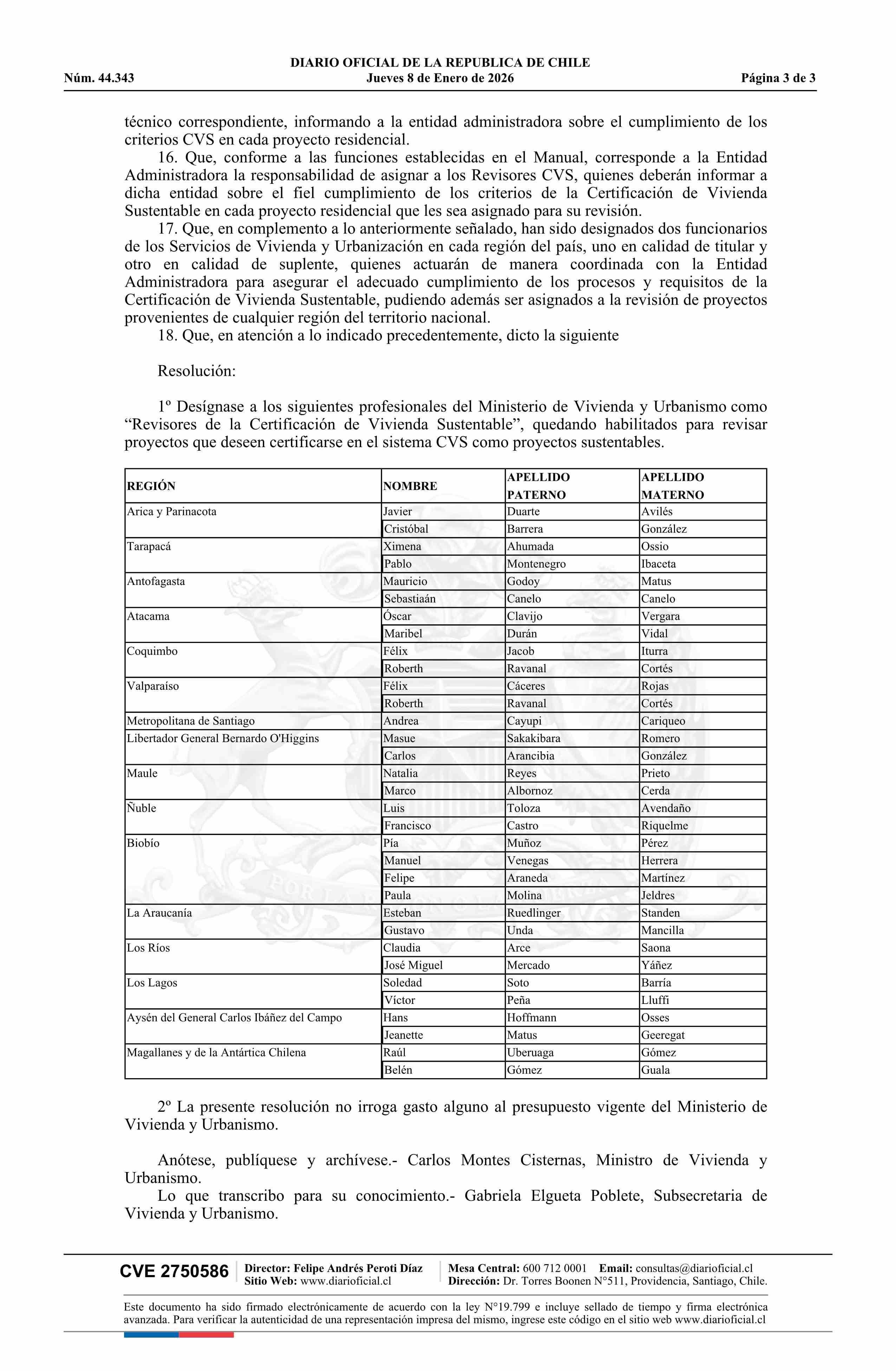 | Título: | Resolución exenta número 2.019, de 2025.- Designa a profesionales como Revisores de la Certificación de Vivienda Sustentable |