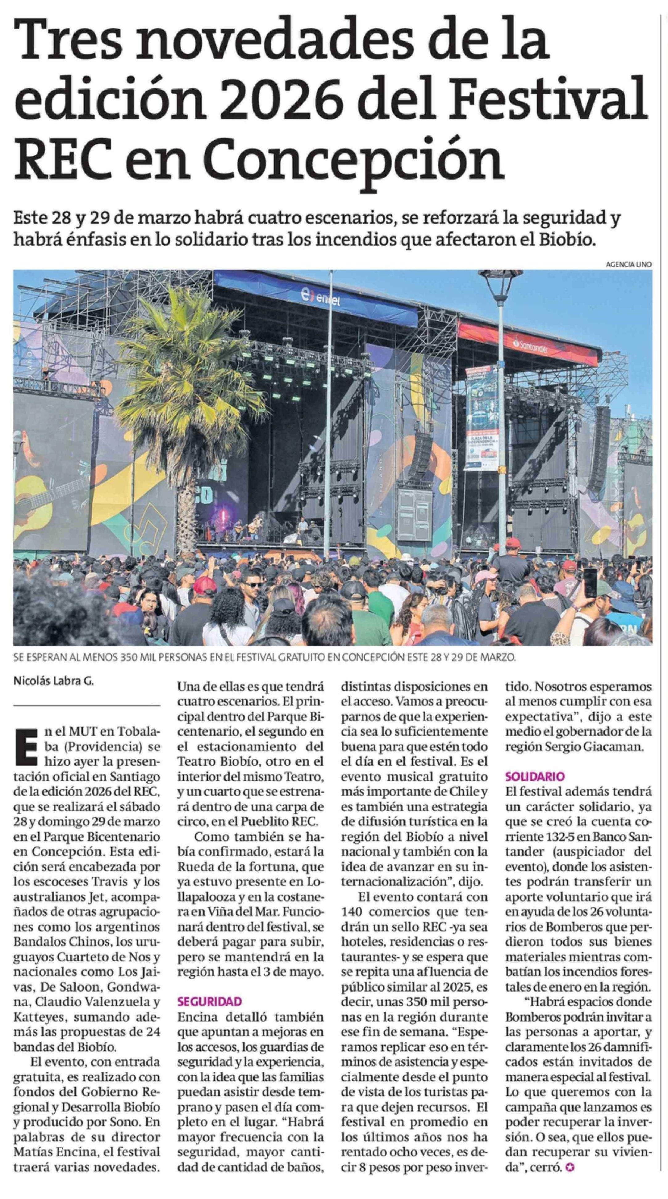 Tres novedades de la edición 2026 del Festival REC en Concepción