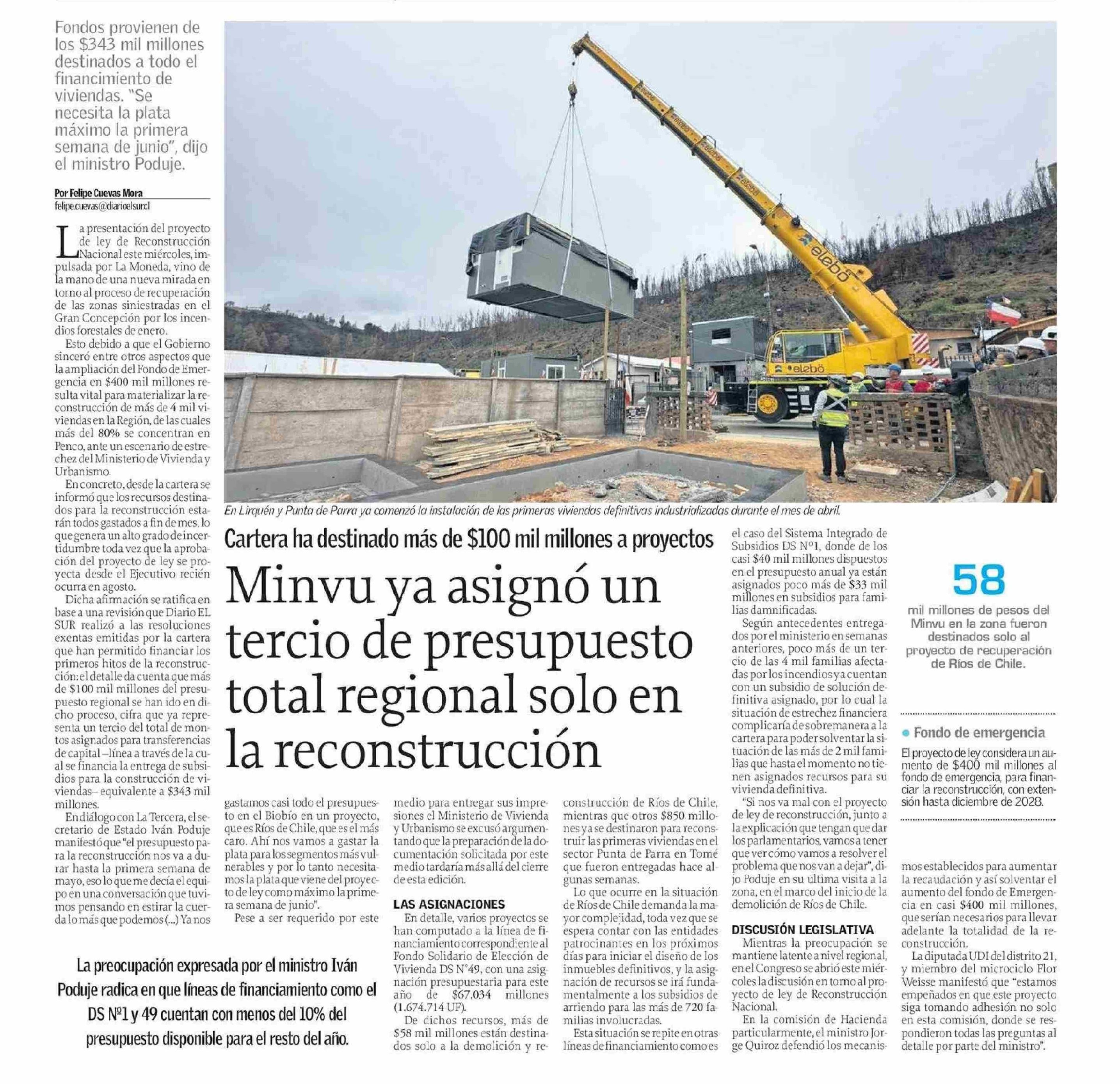 Minvu ya asignó un tercio de presupuesto total regional solo en la reconstrucción