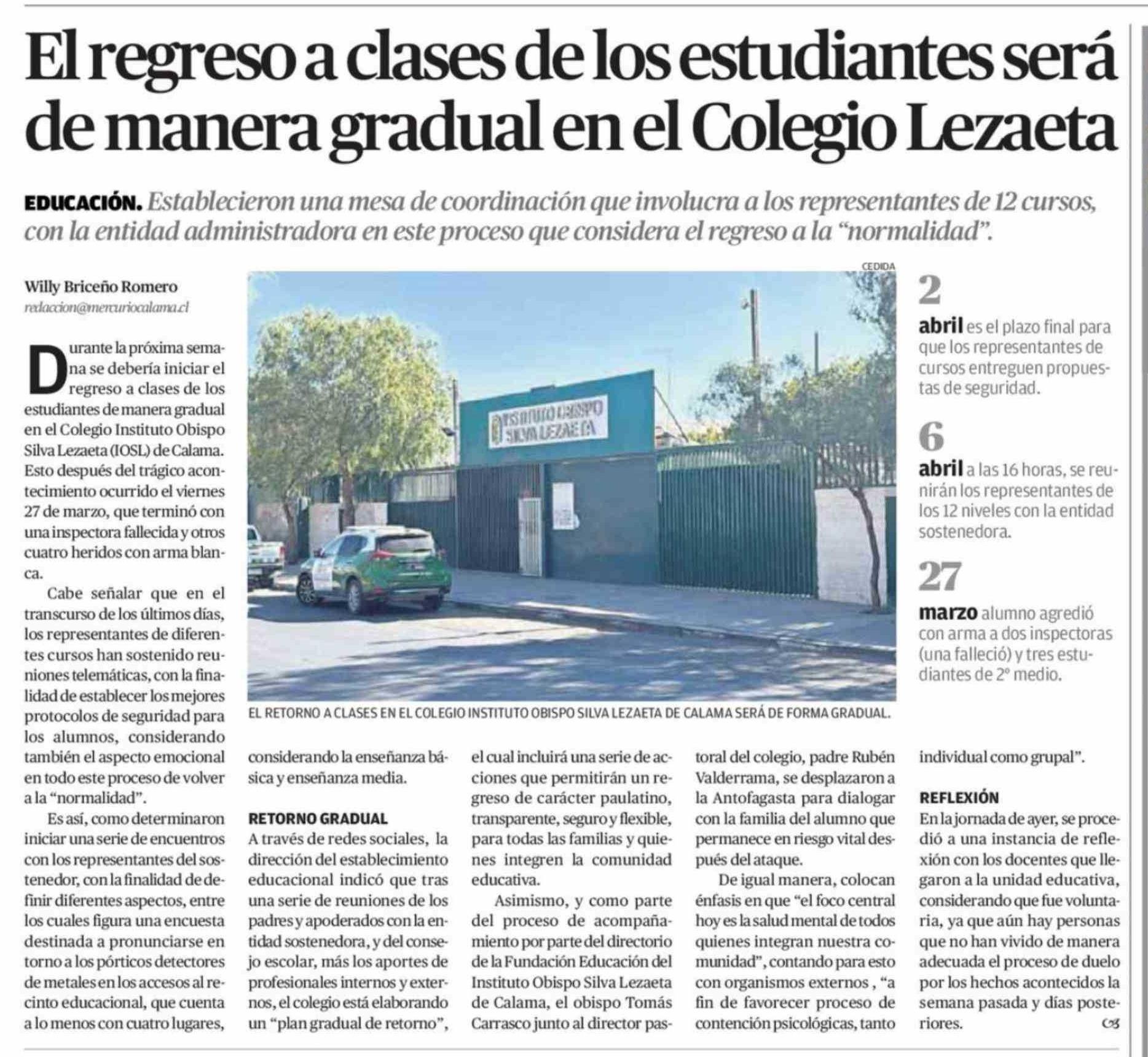 Título: El regreso a clases de los estudiantes será de manera gradual en el Colegio Lezaeta