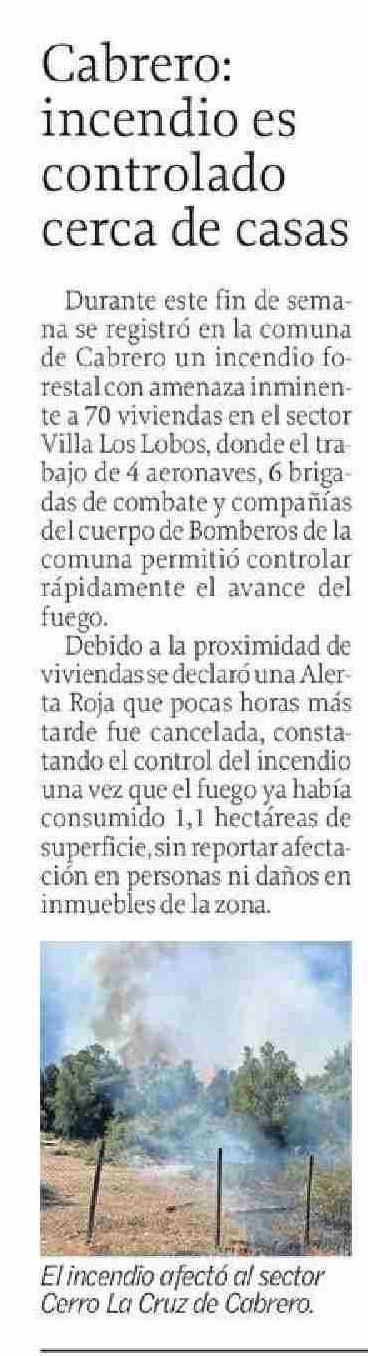 Cabrero: incendio es controlado cerca de casas